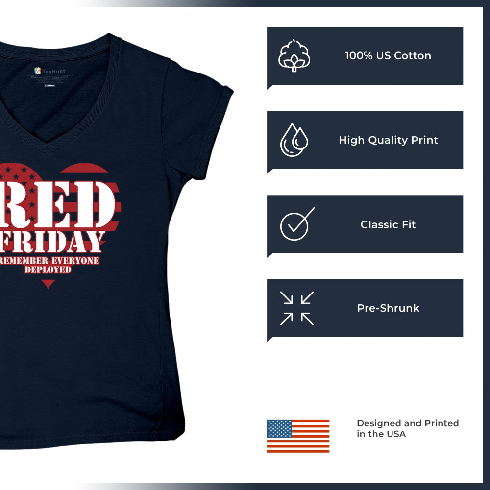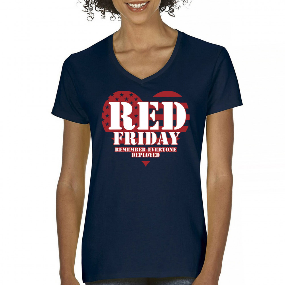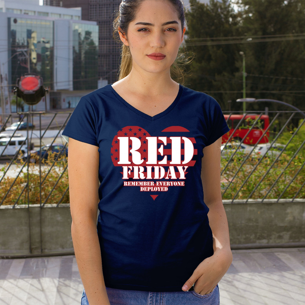Show your support with our R.E.D. Friday shirt. Featuring a heart design with "Remember Everyone Deployed." Perfect for Veterans Day and patriotic events.