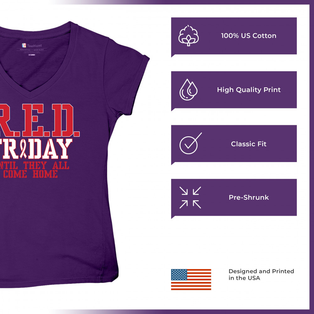 Demonstrate your support for our brave troops with this R.E.D. Friday shirt. Featuring a striking design and the heartfelt message "Until They All Come Home," this shirt is ideal for showing your patriotism and respect for those deployed. Made from premium, soft fabric, it offers lasting comfort and durability. Wear it on Veterans Day, Memorial Day, and the Fourth of July, or anytime you want to honor our military. This shirt is also a wonderful gift for anyone who stands with our troops and believes in remembering everyone deployed.
