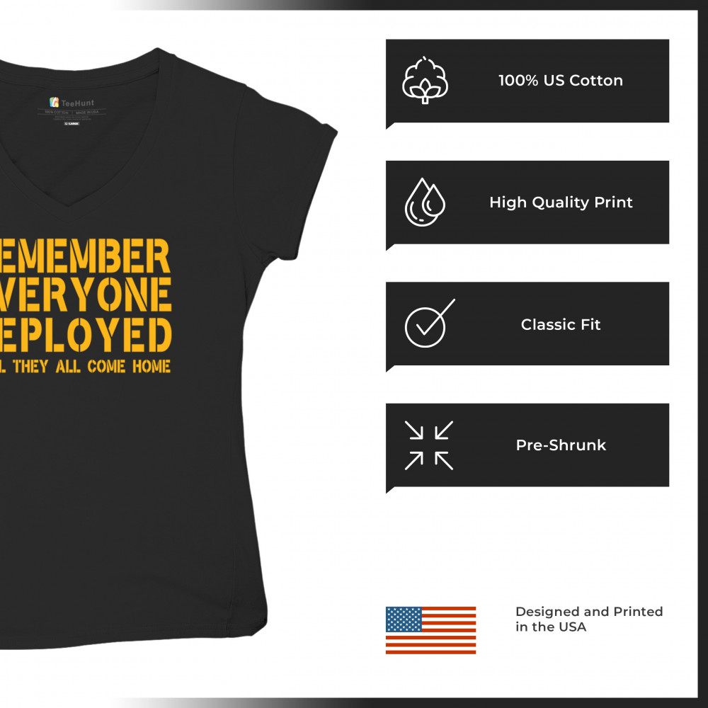 Show your support for deployed troops with our "Remember Everyone Deployed" shirt. Perfect for patriotic events like Veterans Day and Memorial Day.