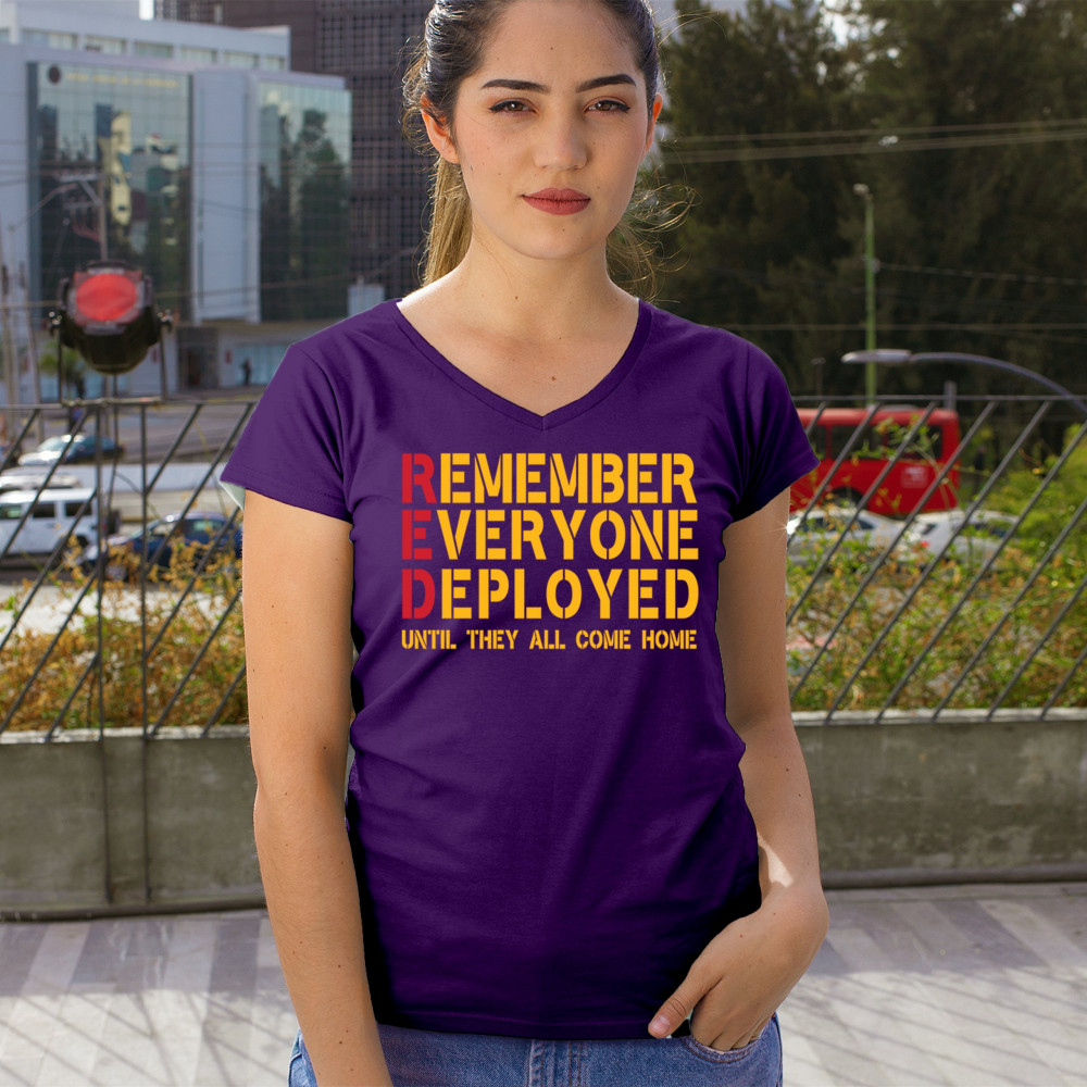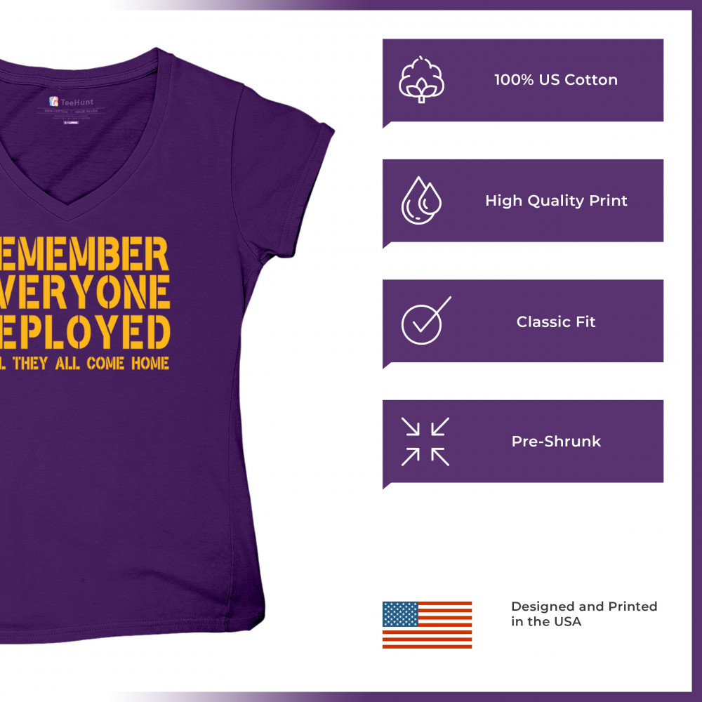 Show your support for deployed troops with our "Remember Everyone Deployed" shirt. Perfect for patriotic events like Veterans Day and Memorial Day.