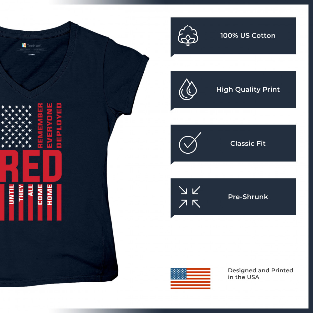 Support our troops with the "RED - Remember Everyone Deployed" design. A powerful reminder to honor our soldiers until they all come home. Ideal for patriotic events and daily wear.