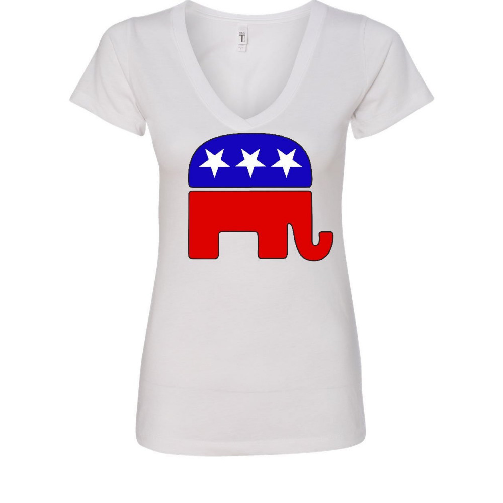 REPUBLICAN PARTY ELEPHANT logo women's v-neck t-shirt political conservative white
