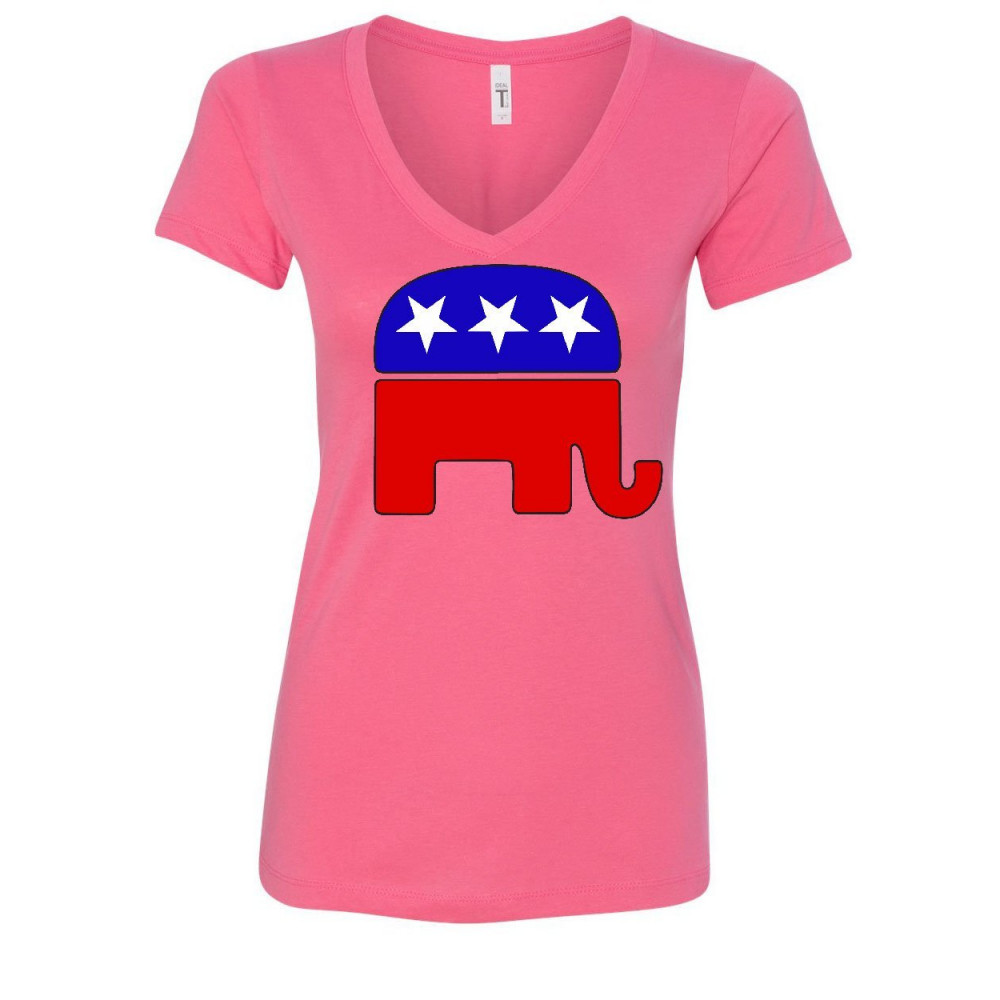 REPUBLICAN PARTY ELEPHANT logo women's v-neck t-shirt political conservative pink