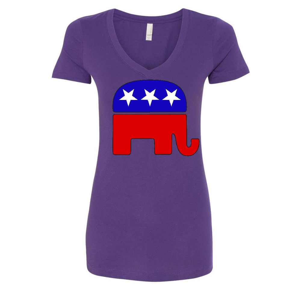 REPUBLICAN PARTY ELEPHANT logo women's v-neck t-shirt political conservative purple