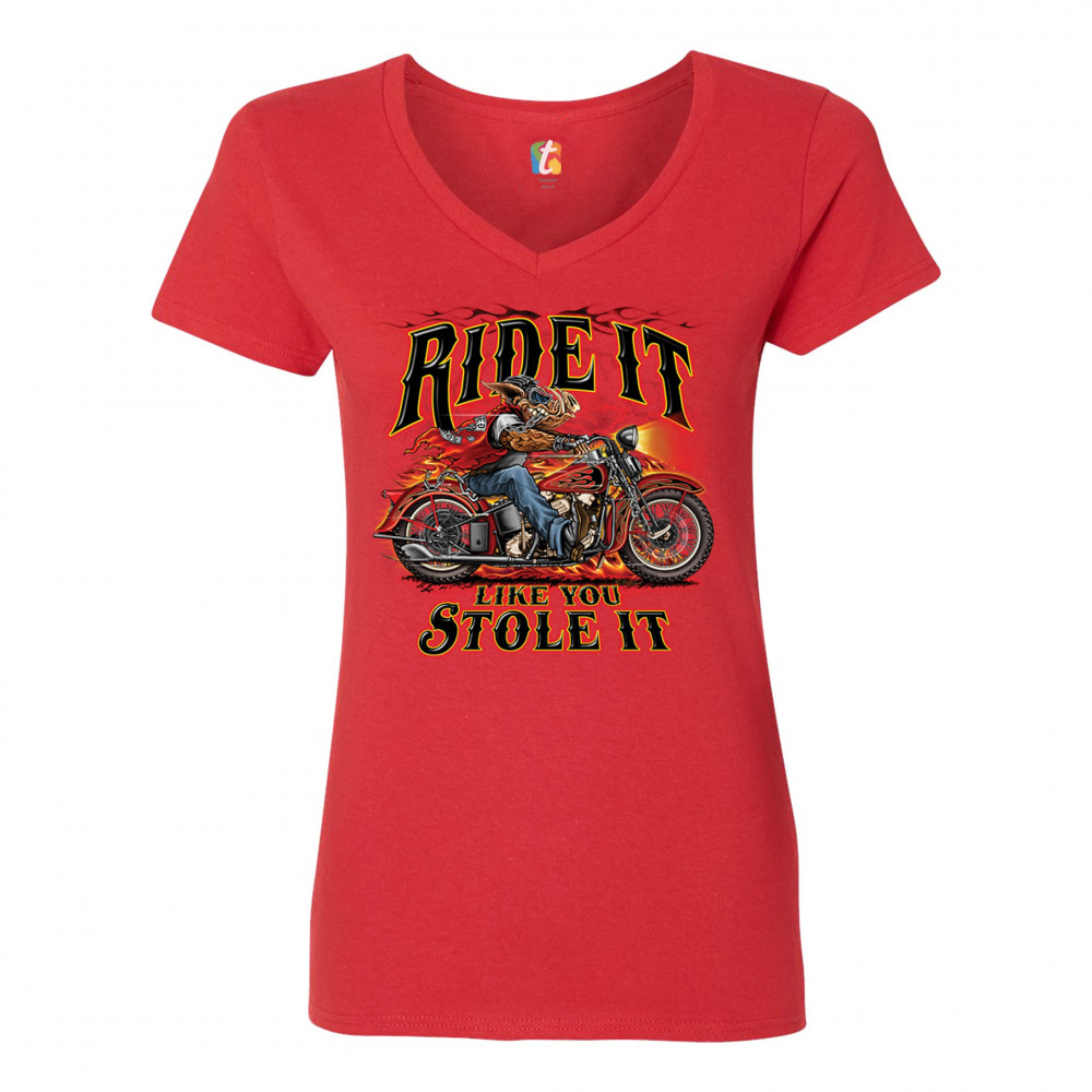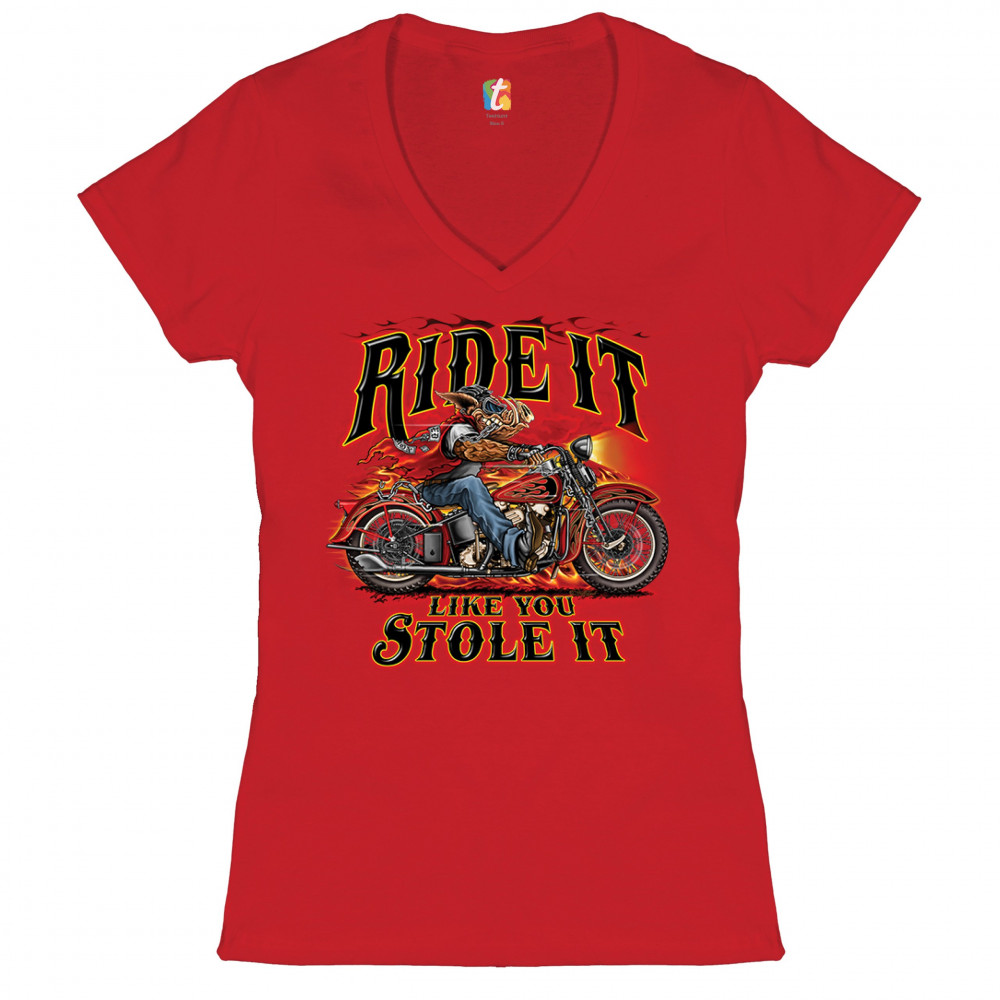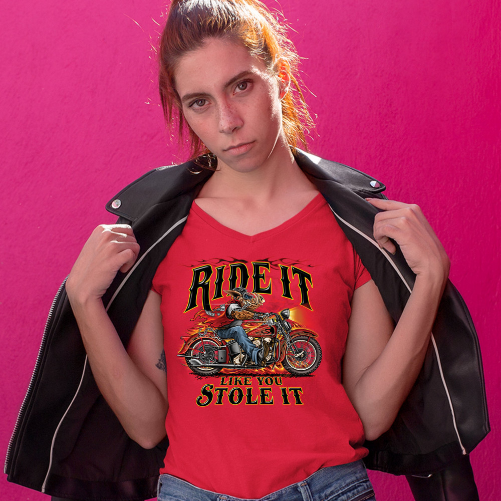 RIDE IT LIKE YOU STOLE IT women's v-neck t-shirt biker born to be wild tee red