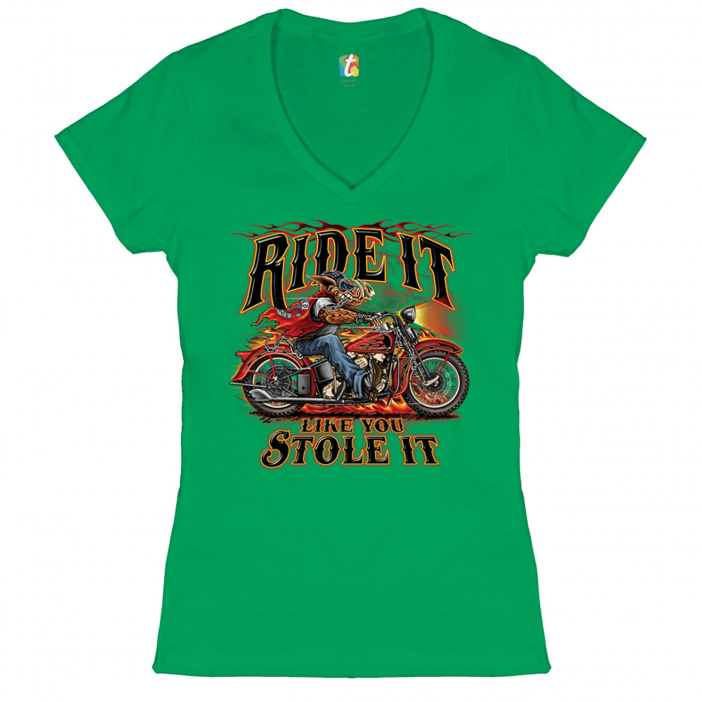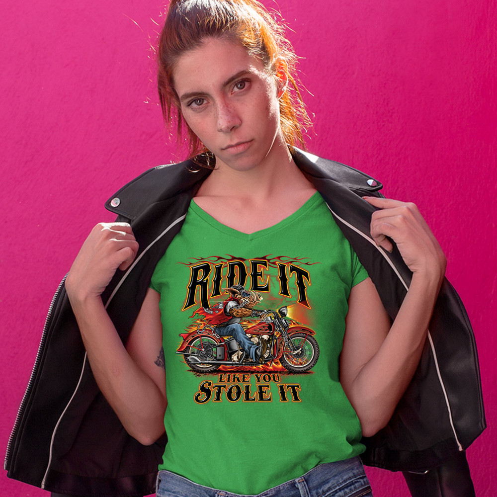 RIDE IT LIKE YOU STOLE IT women's v-neck t-shirt biker born to be wild tee green