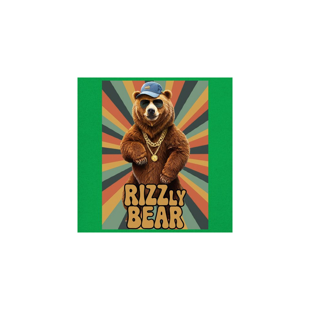 Here's to the bear that got the 'rizz.' With shades on and bling out, this bear is not just part of the scene; it is the scene. This design says 'I'm here to party', and the party doesn't start till the Rizzly Bear walks in.