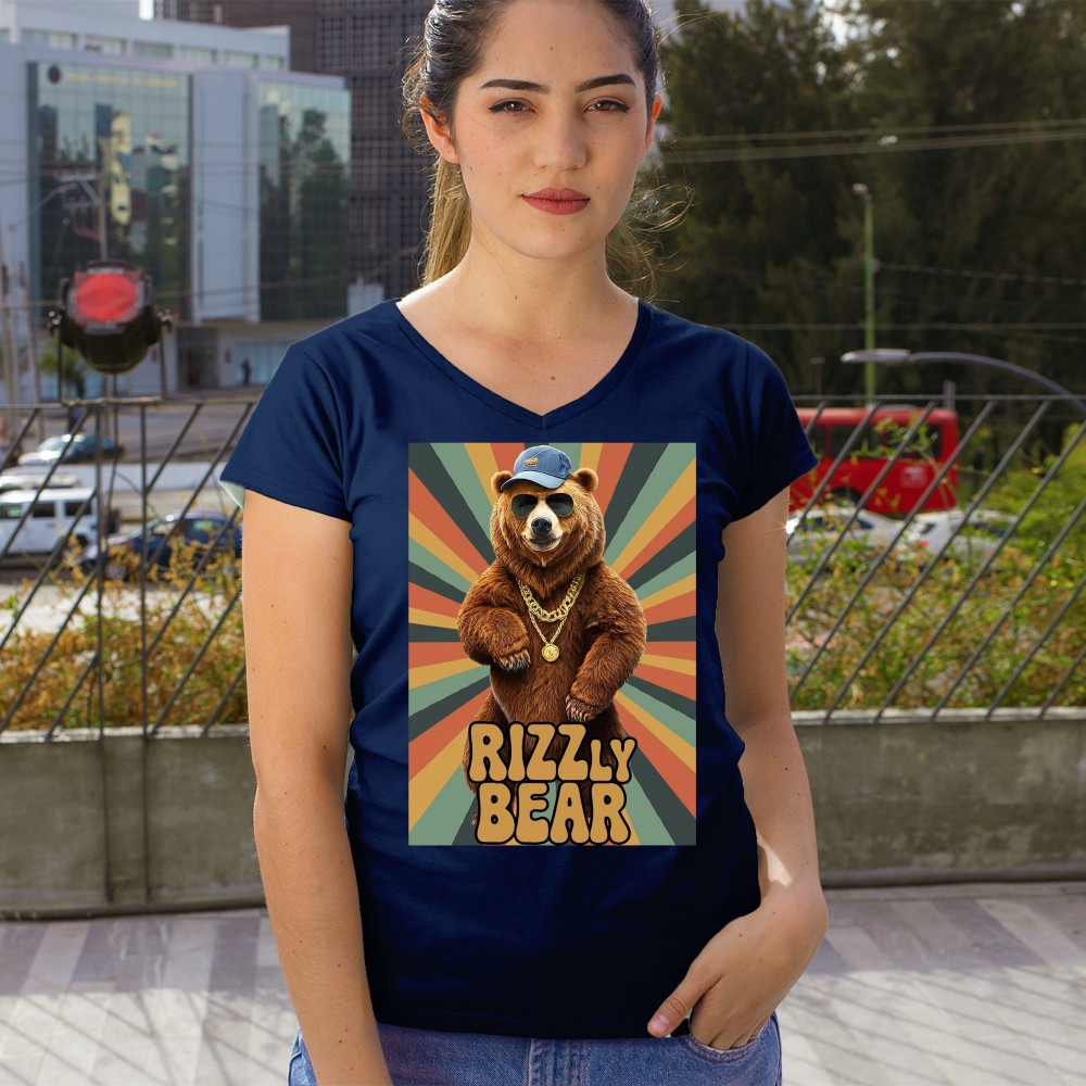 What happens when a bear strolls through the city and grabs a cap and some gold? You get the Rizzly Bear. It's fun, fearless, and a bit funky – a true original in the world of graphic design, just like you.