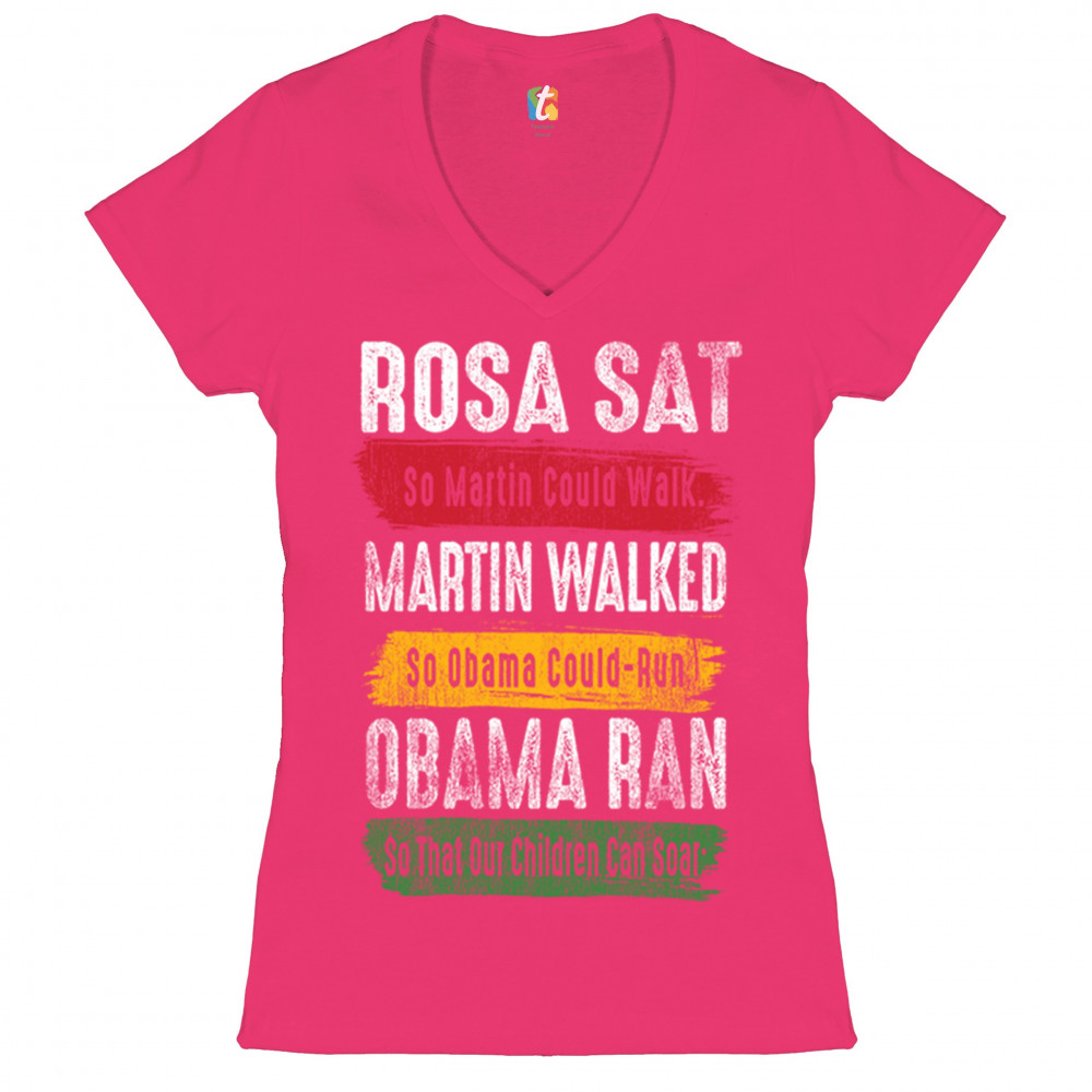 ROSA SAT MARTIN WALKED OBAMA RAN women's v-neck t-shirt blm civil rights tee pink