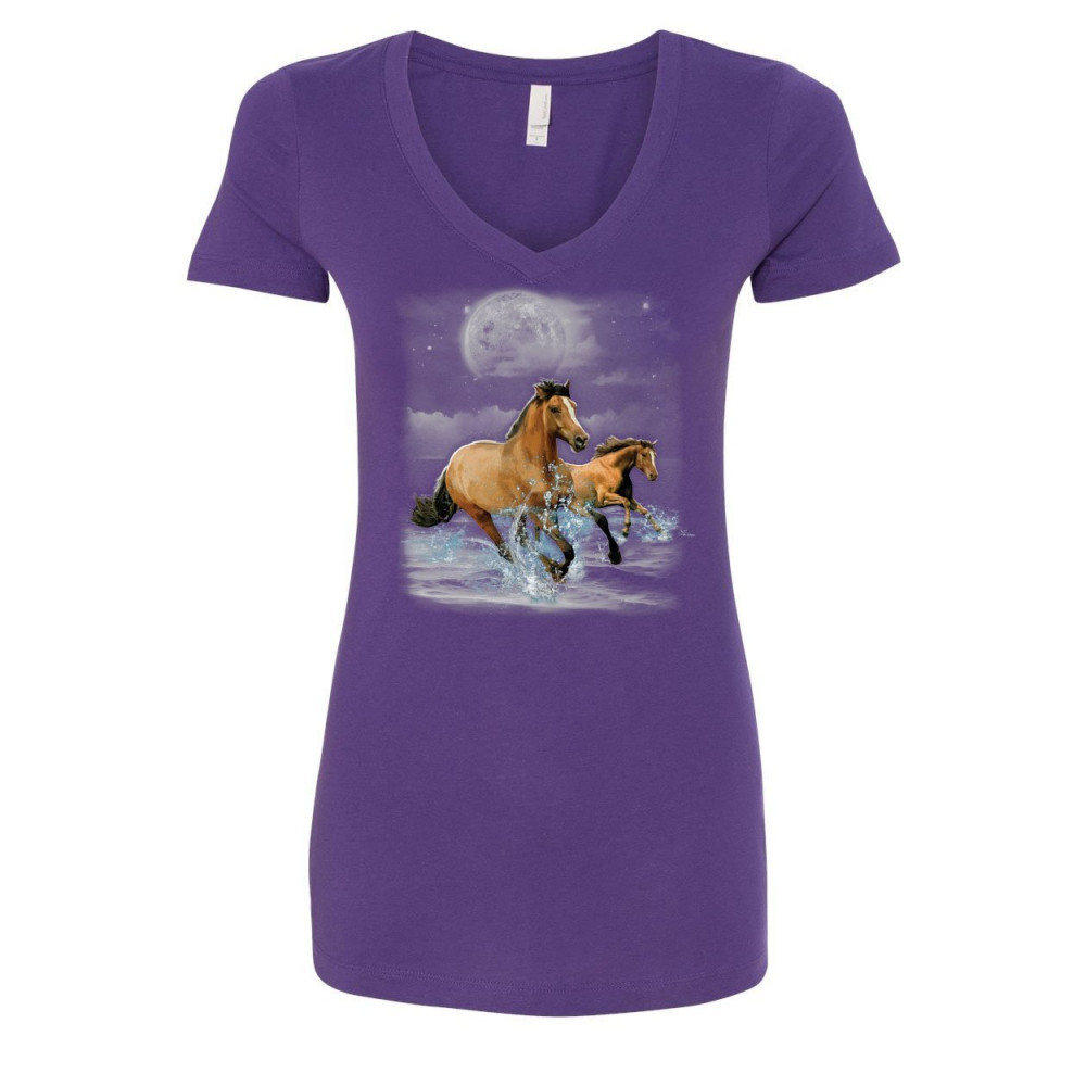 RUNNING WILD HORSES women's v-neck t-shirt wildlife mustangs nature animals purple