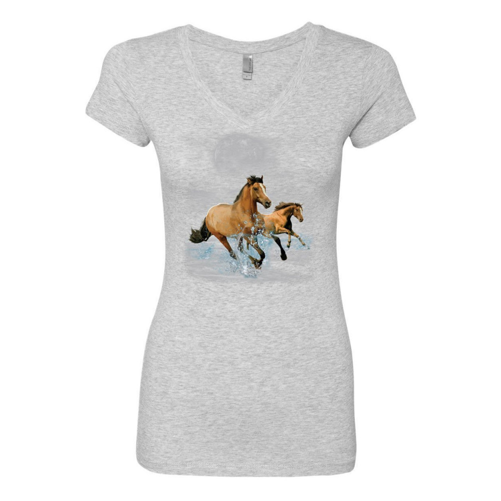 RUNNING WILD HORSES women's v-neck t-shirt wildlife mustangs nature animals gray