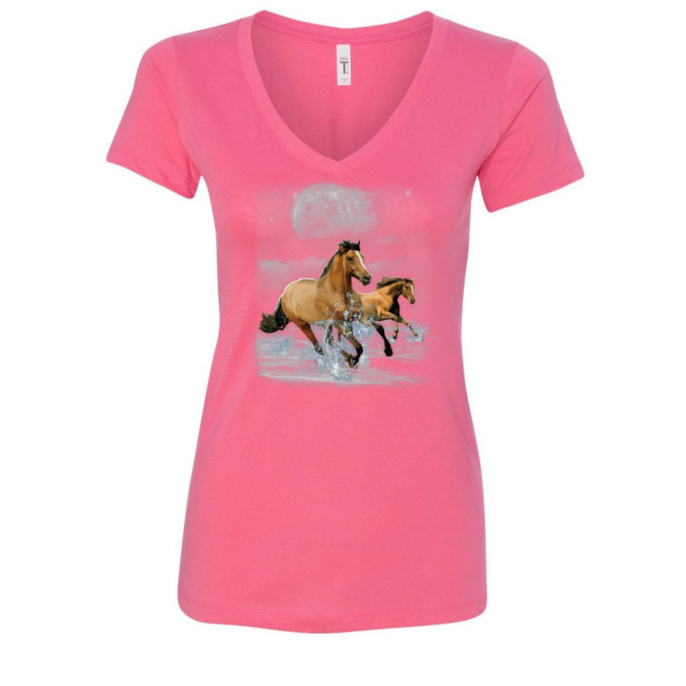 RUNNING WILD HORSES women's v-neck t-shirt wildlife mustangs nature animals pink