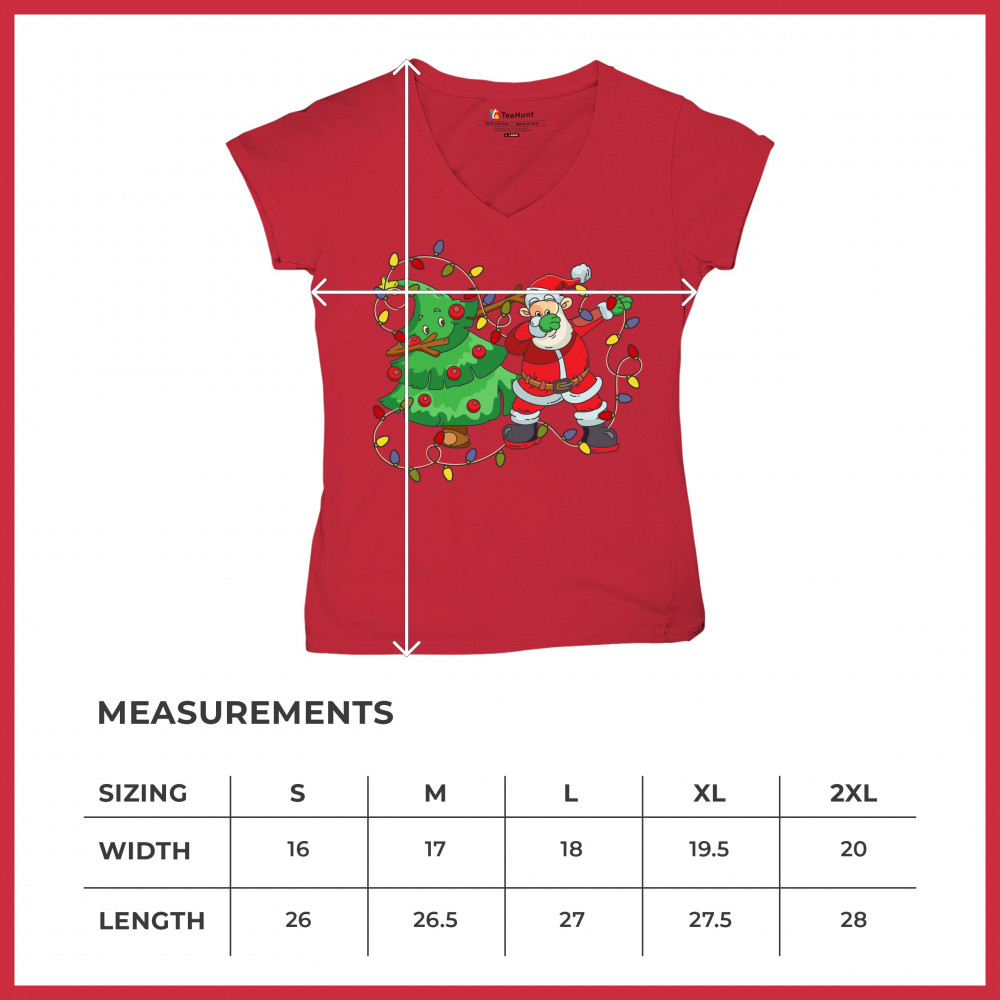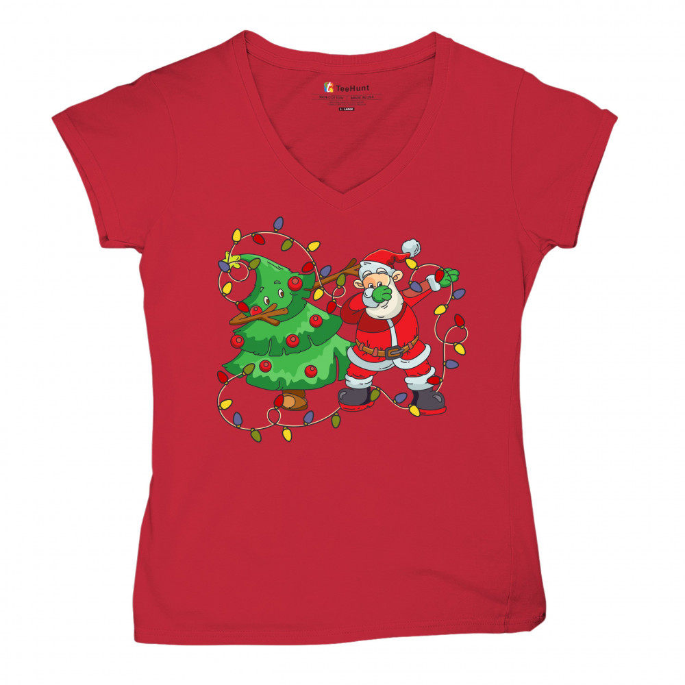 SANTA CLAUS DABBING WITH CHRISTMAS TREE women's v-neck t-shirt merry xmas tee red