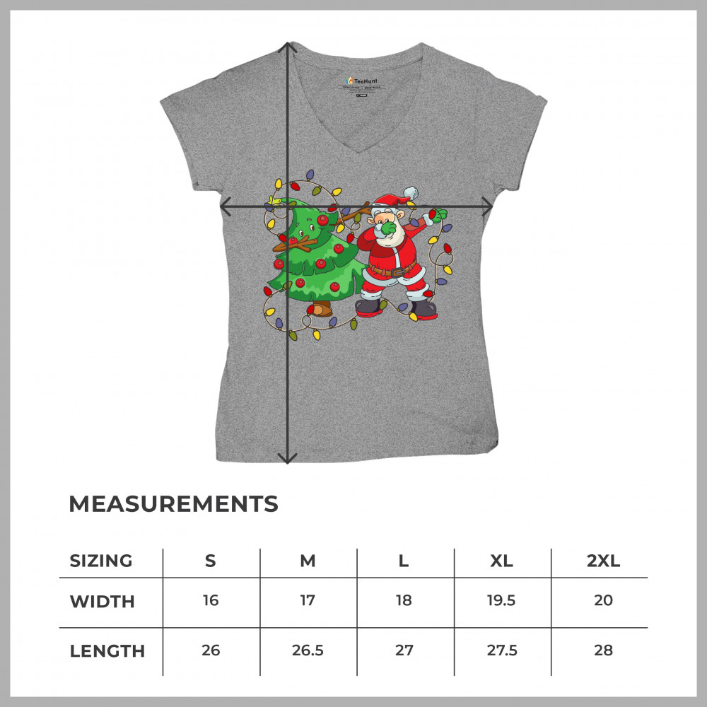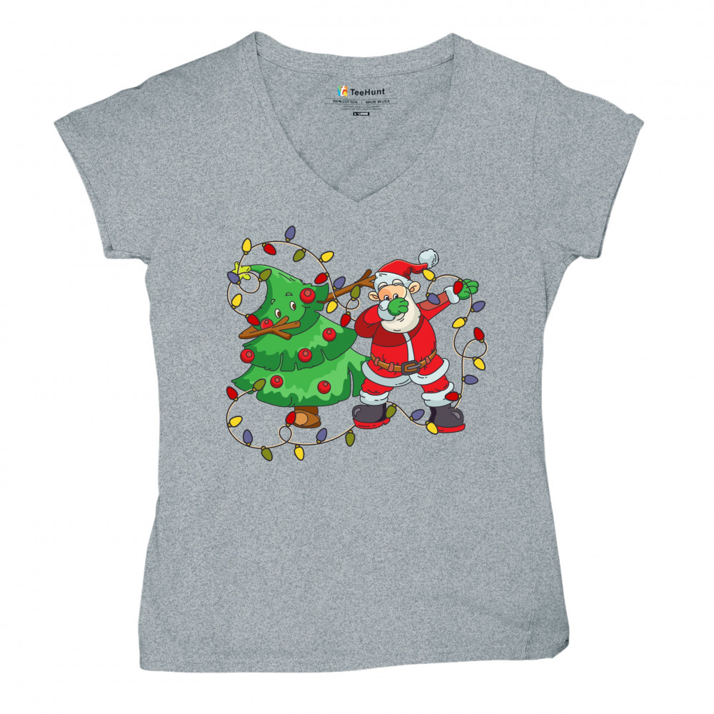 SANTA CLAUS DABBING WITH CHRISTMAS TREE women's v-neck t-shirt merry xmas tee gray