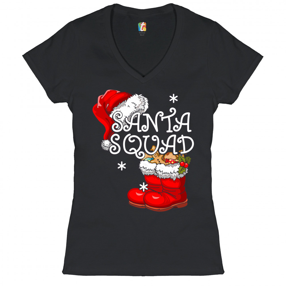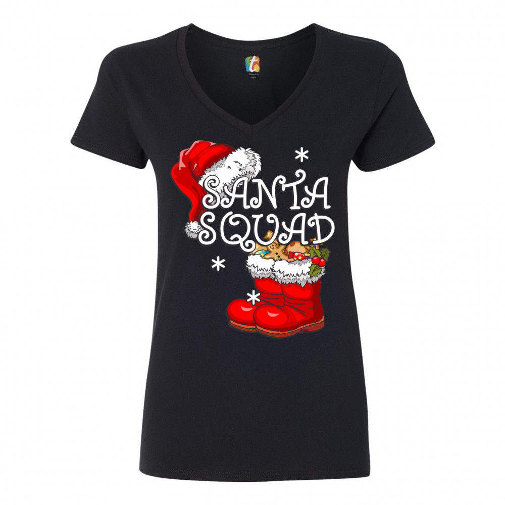 SANTA SQUAD women's v-neck t-shirt merry christmas reindeer rudolph elf tee black