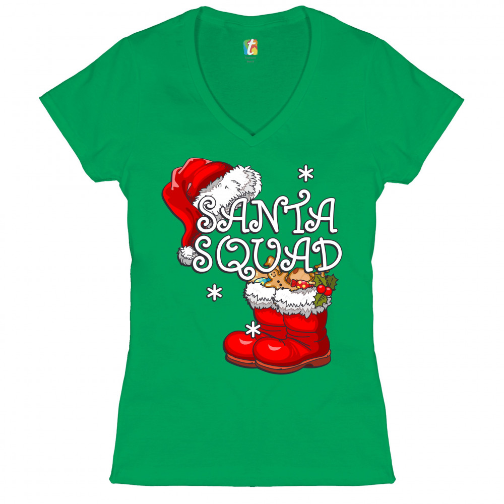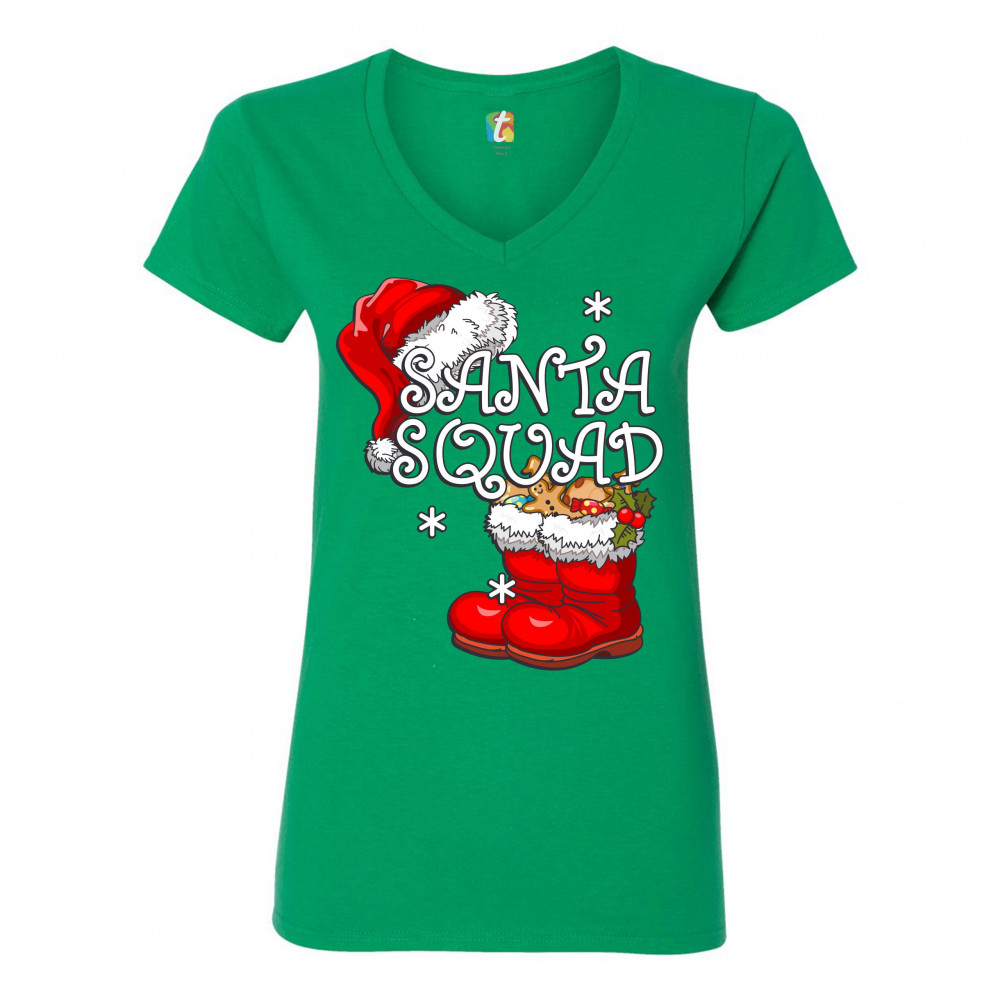 SANTA SQUAD women's v-neck t-shirt merry christmas reindeer rudolph elf tee green