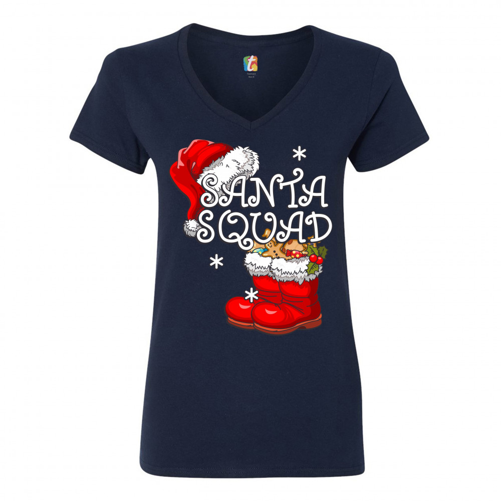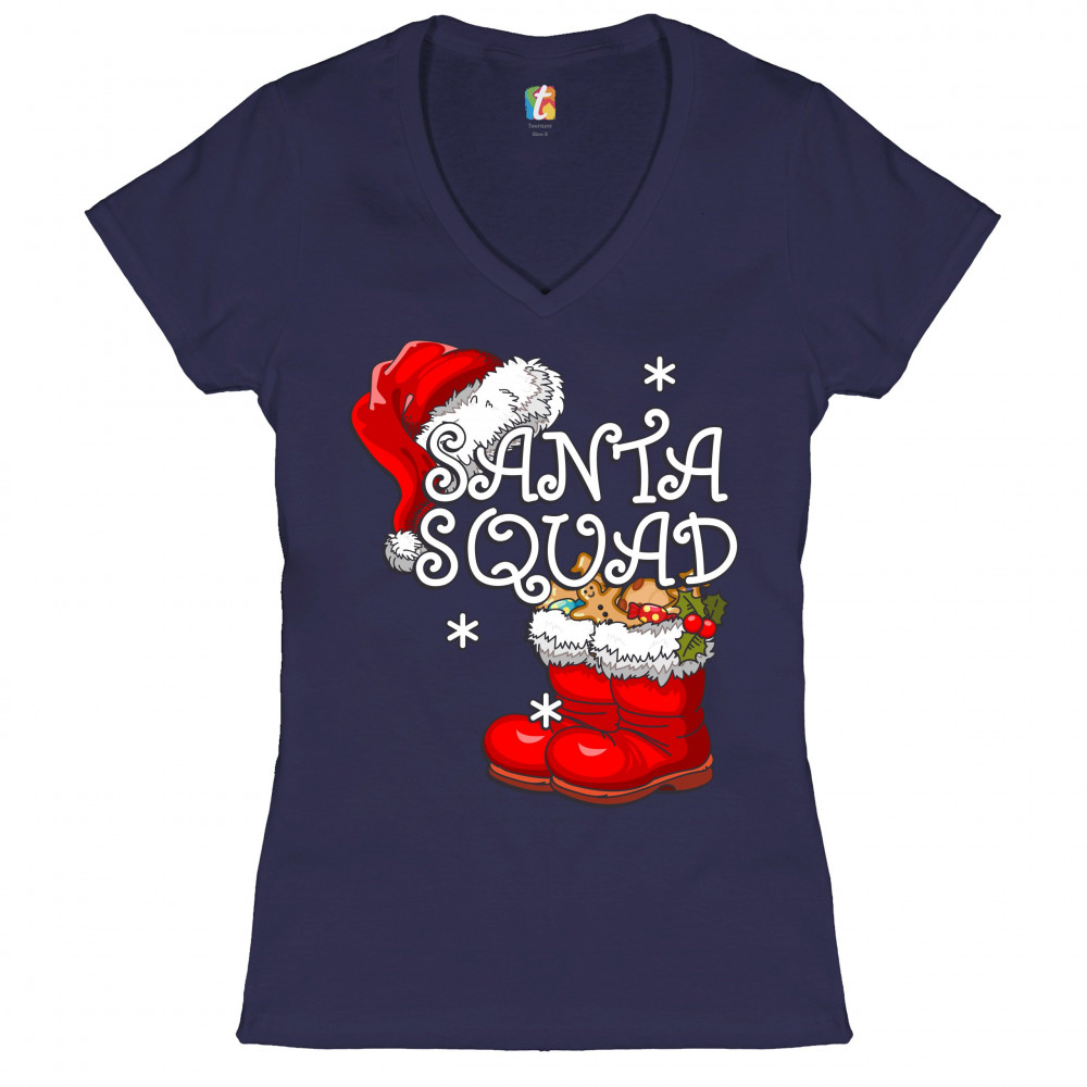 SANTA SQUAD women's v-neck t-shirt merry christmas reindeer rudolph elf tee navy blue