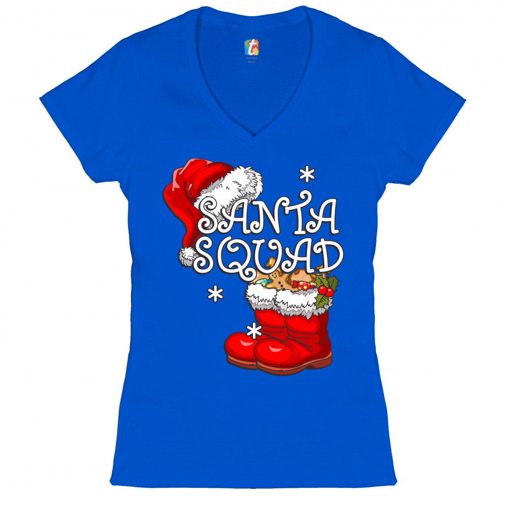 SANTA SQUAD women's v-neck t-shirt merry christmas reindeer rudolph elf tee royal blue