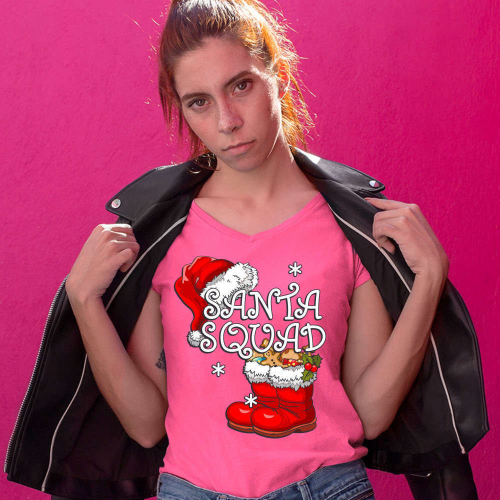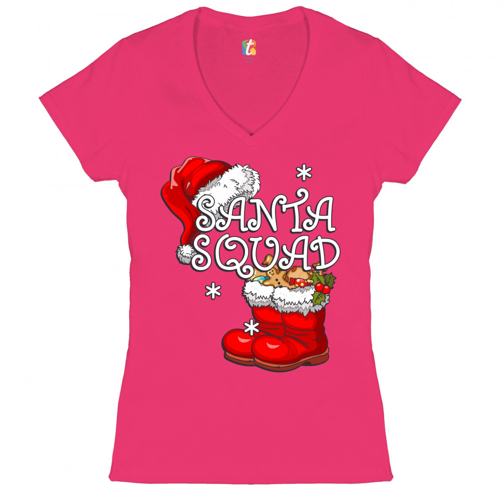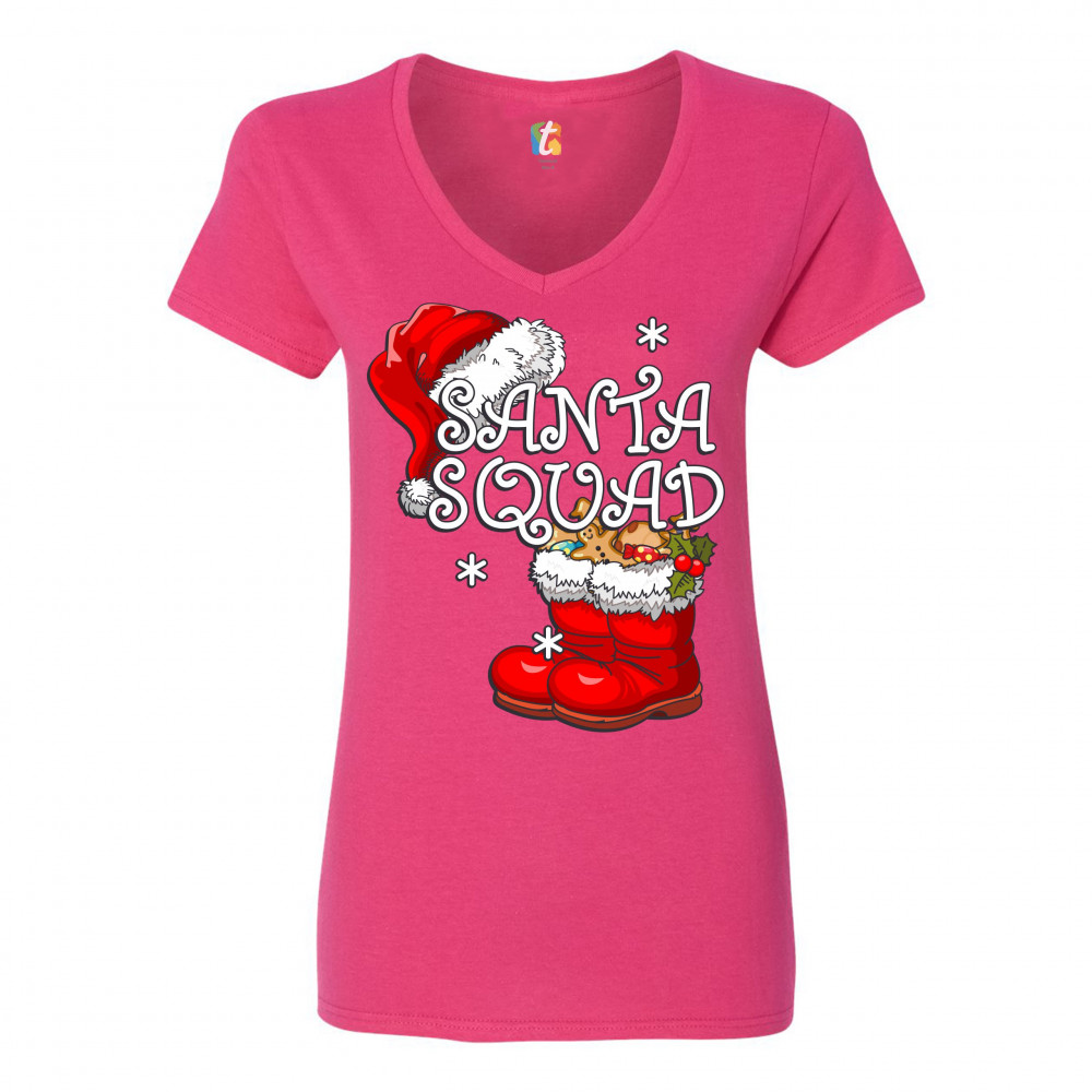 SANTA SQUAD women's v-neck t-shirt merry christmas reindeer rudolph elf tee pink