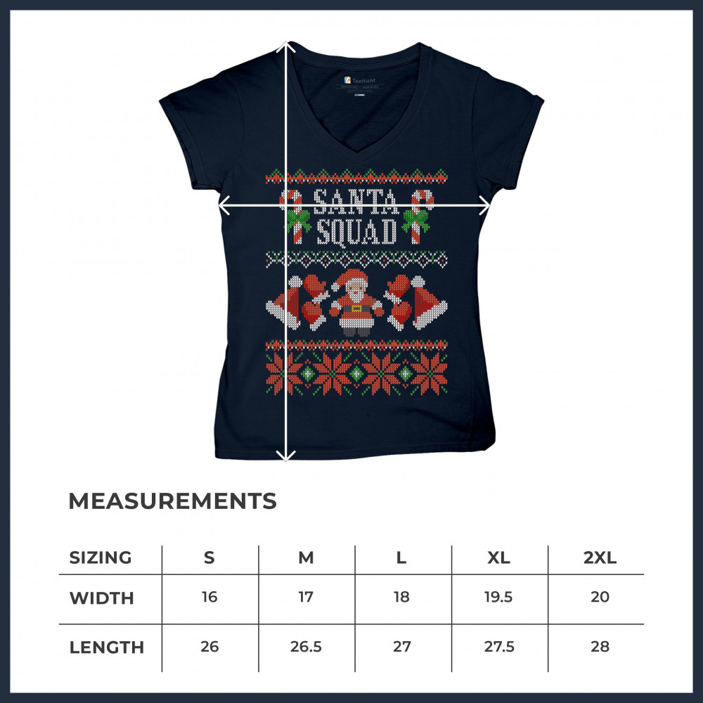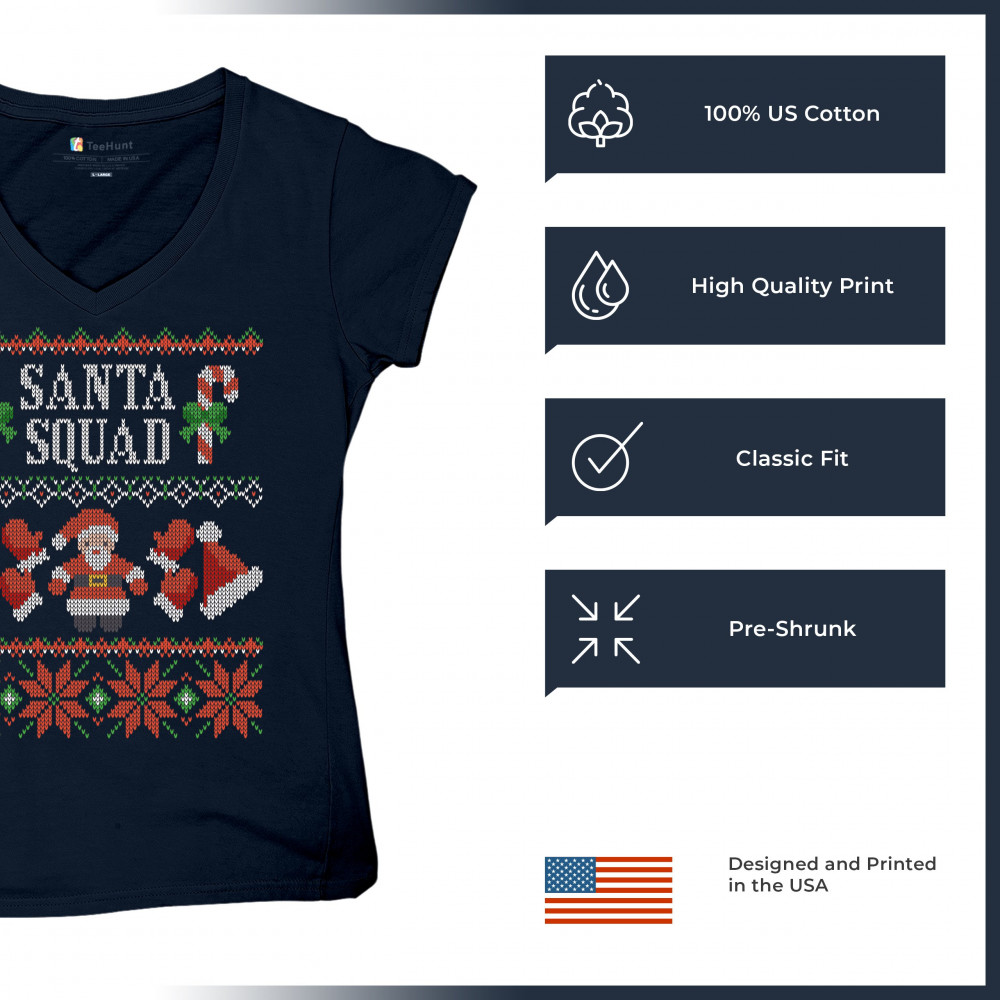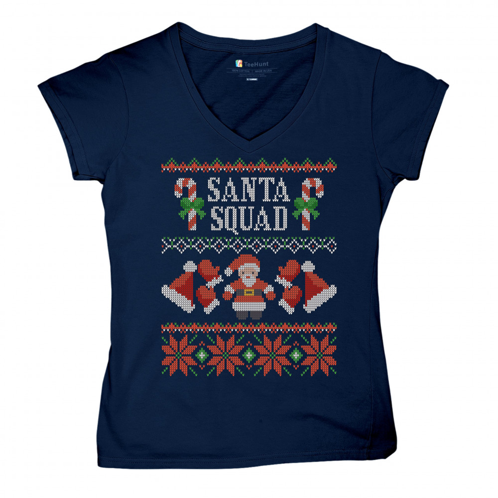 SANTA SQUAD women's v-neck t-shirt ugly sweater merry and bright christmas tee navy blue