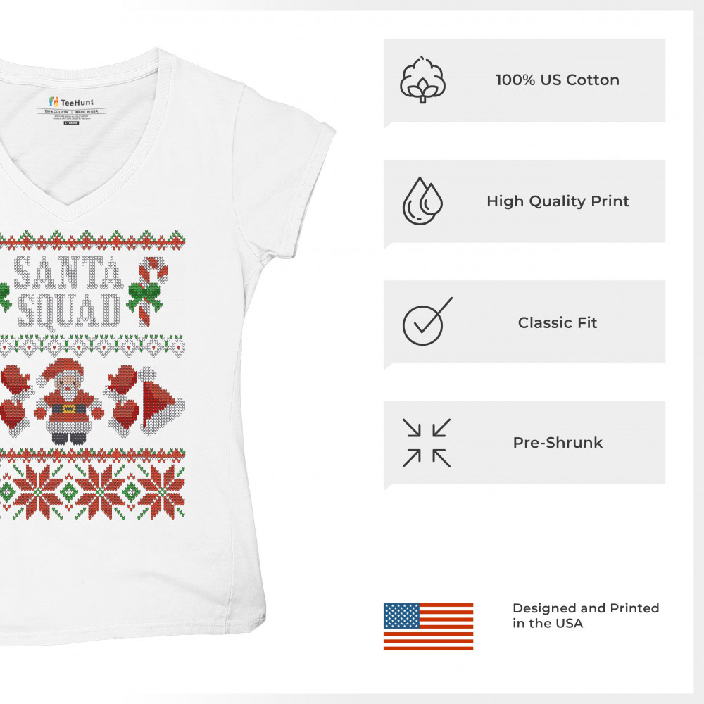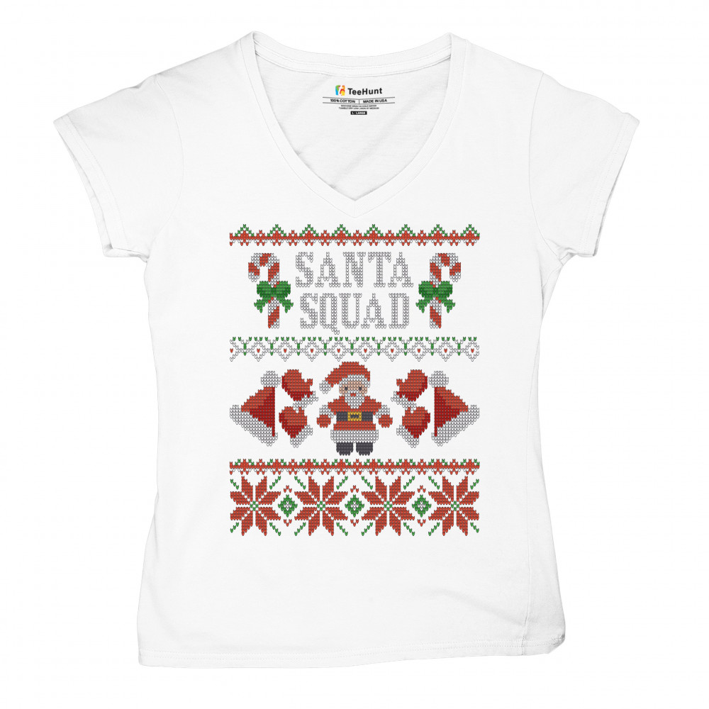 SANTA SQUAD women's v-neck t-shirt ugly sweater merry and bright christmas tee white