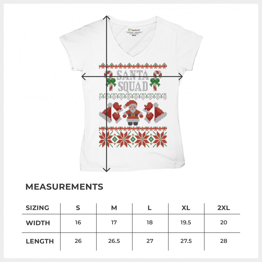 A cute print saying: "Santa Squad" and featuring 2 candy canes, 2 Christmas hats and 4 gloves. The print is decorated as an ugly sweater. Amazing choice to make people smile and spread positive vibes on Christmas Eve.