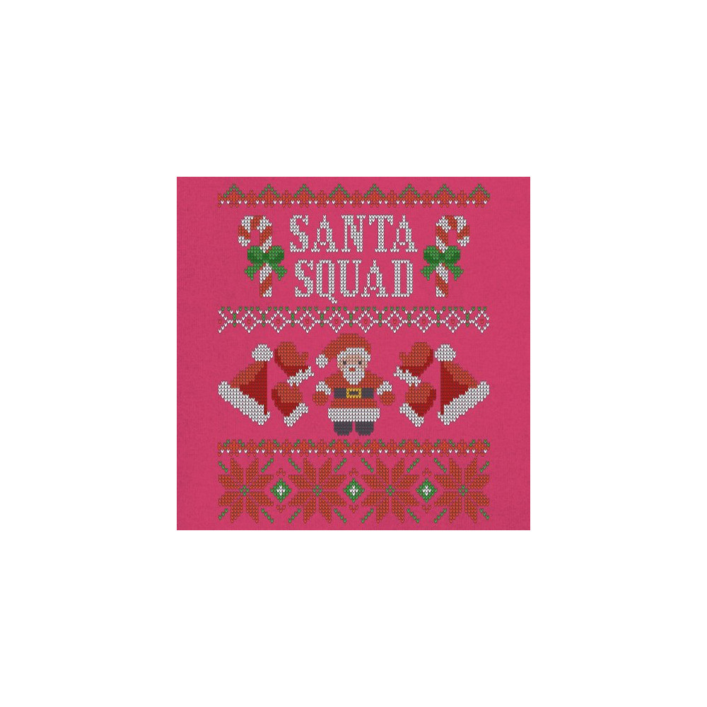 A cute print saying: "Santa Squad" and featuring 2 candy canes, 2 Christmas hats and 4 gloves. The print is decorated as an ugly sweater. Amazing choice to make people smile and spread positive vibes on Christmas Eve.