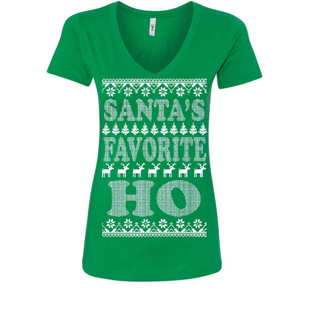 SANTA'S FAVORITE HO women's v-neck t-shirt ugly sweatshirt xmas ho ho ho green