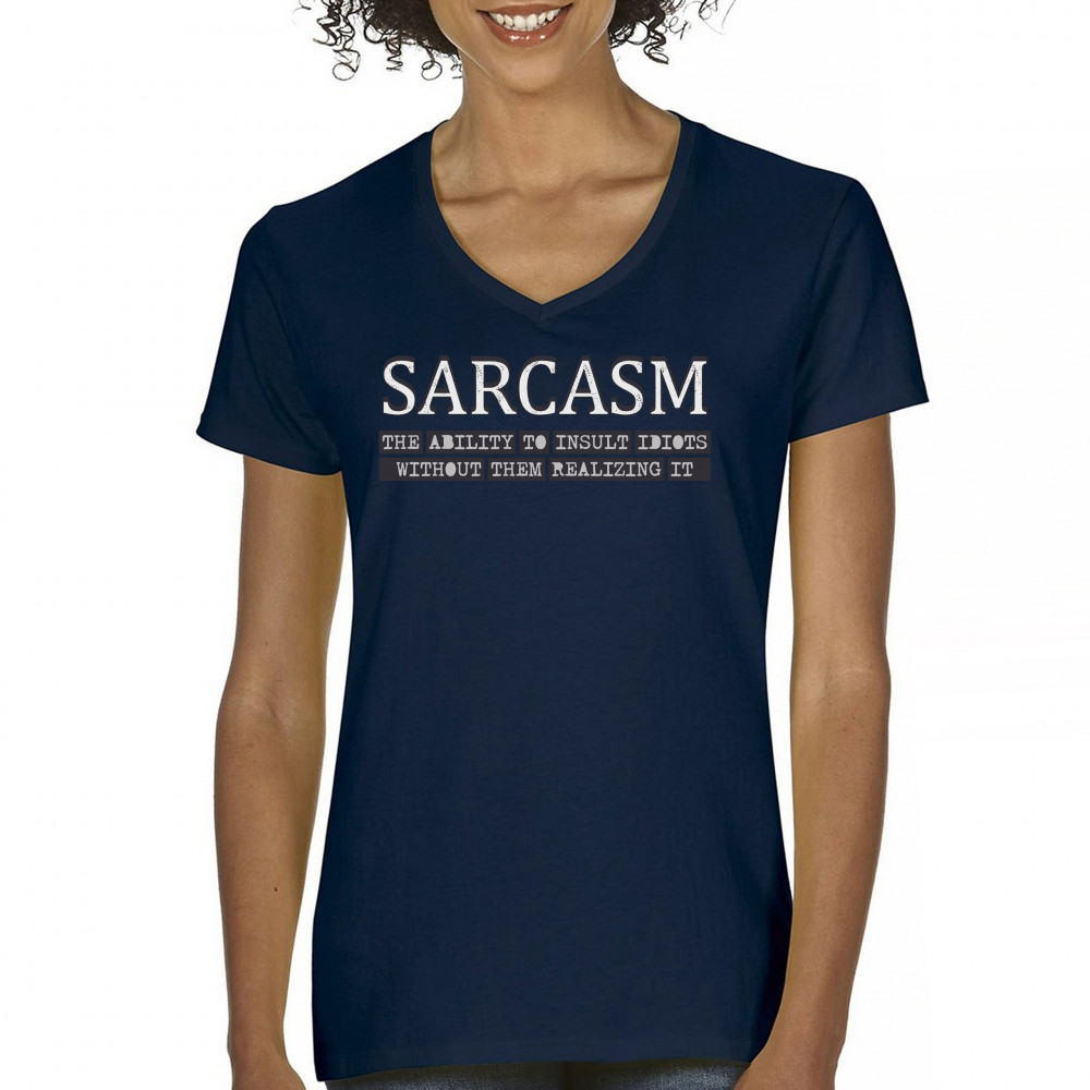 SARCASM ability to insult idiots women's v-neck t-shirt funny sarcastic tee navy blue