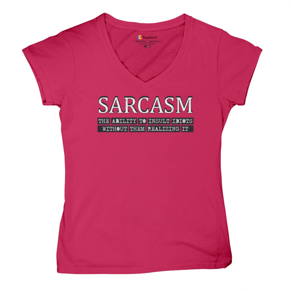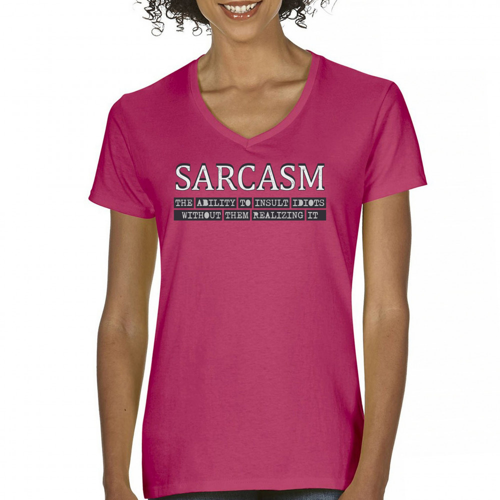 SARCASM ability to insult idiots women's v-neck t-shirt funny sarcastic tee pink