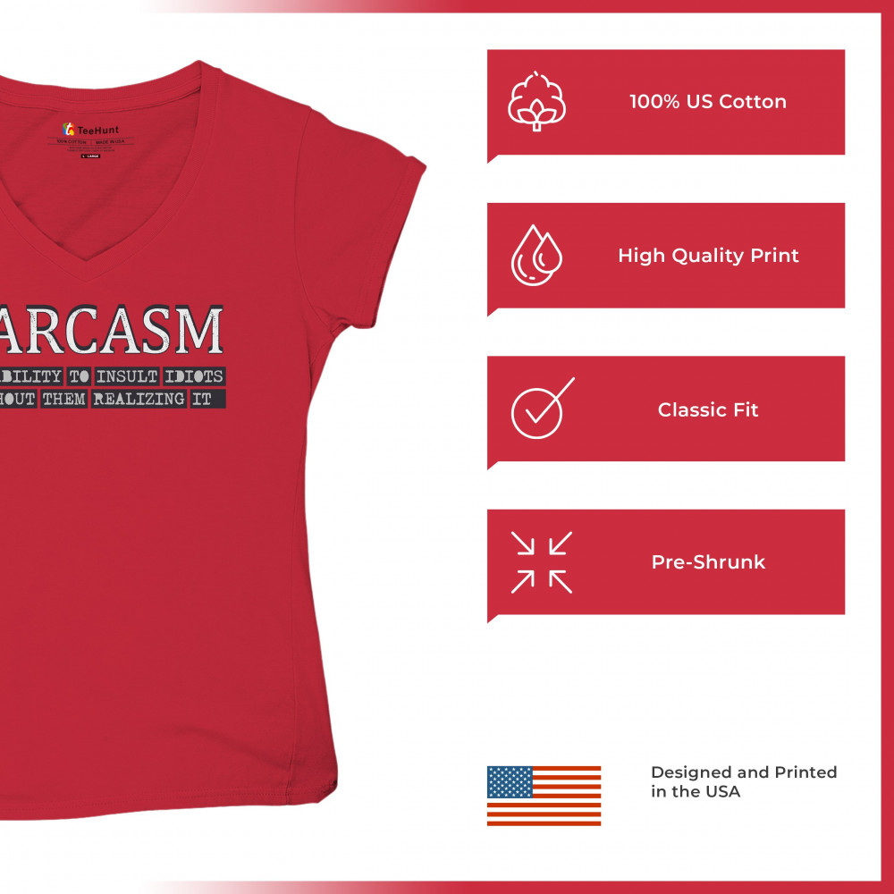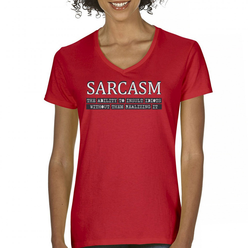 SARCASM ability to insult idiots women's v-neck t-shirt funny sarcastic tee red