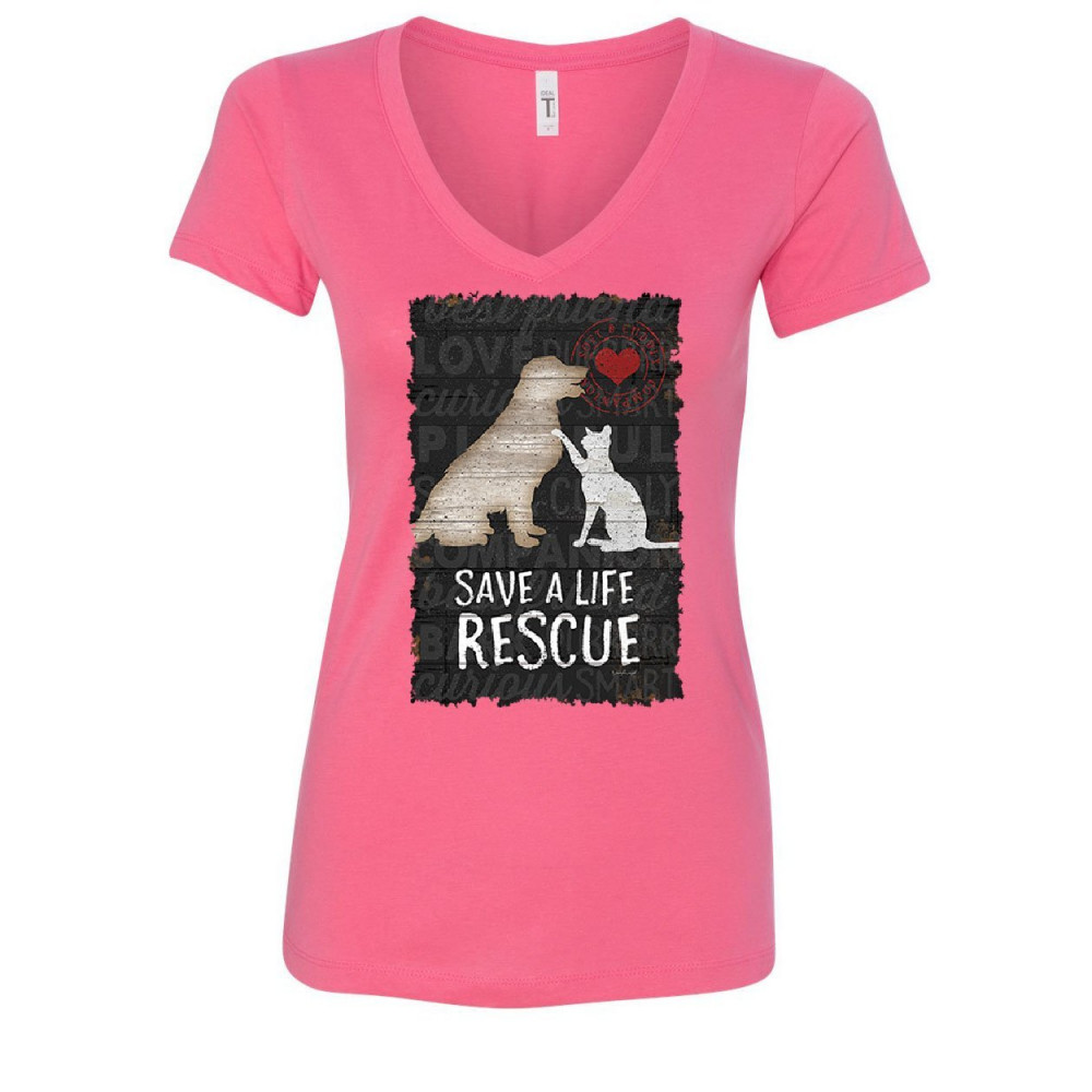 SAVE A LIFE rescue a pet women's v-neck t-shirt dog cat kitty puppy shelter paw pink