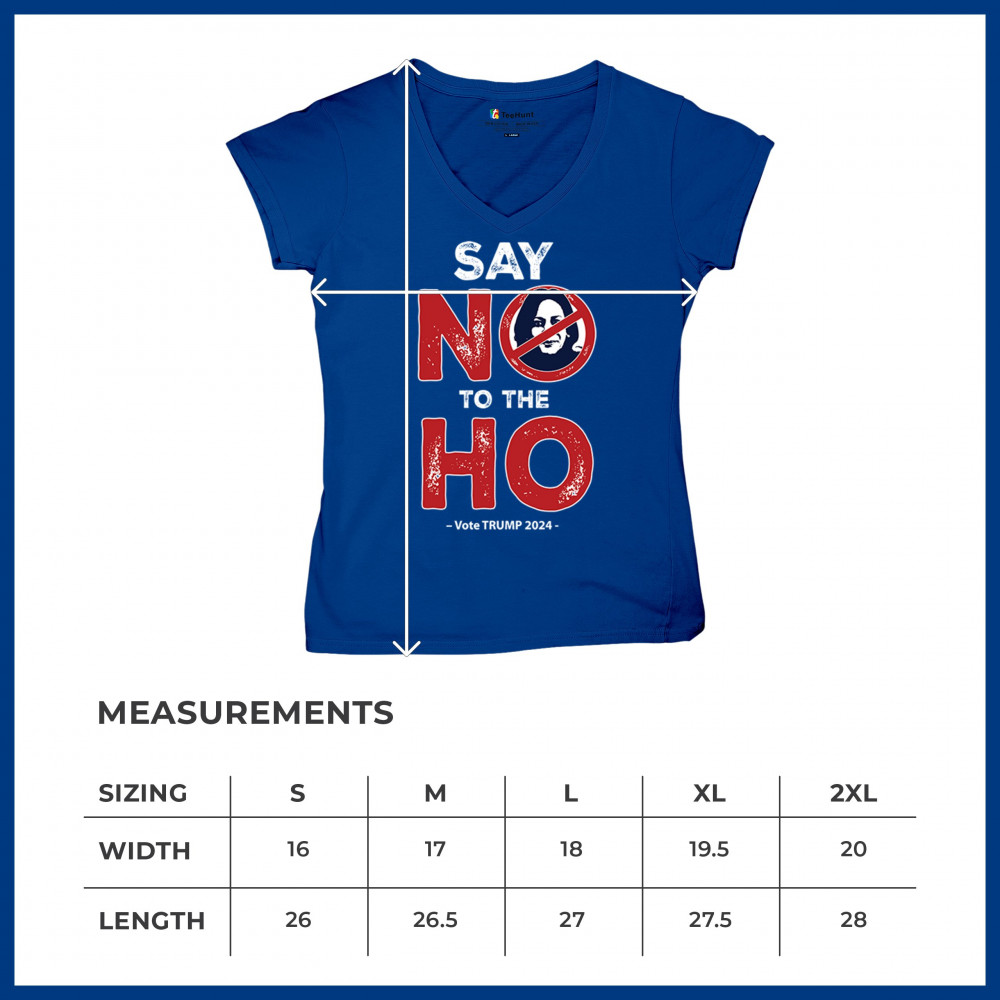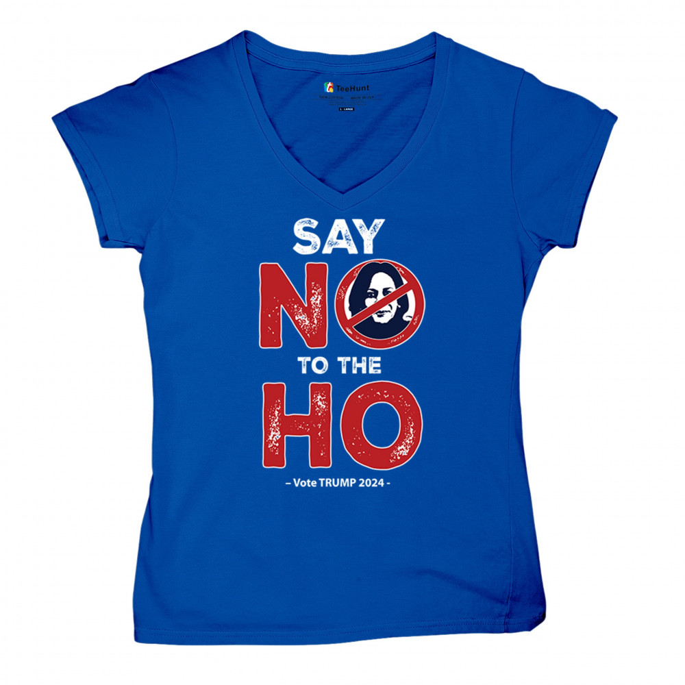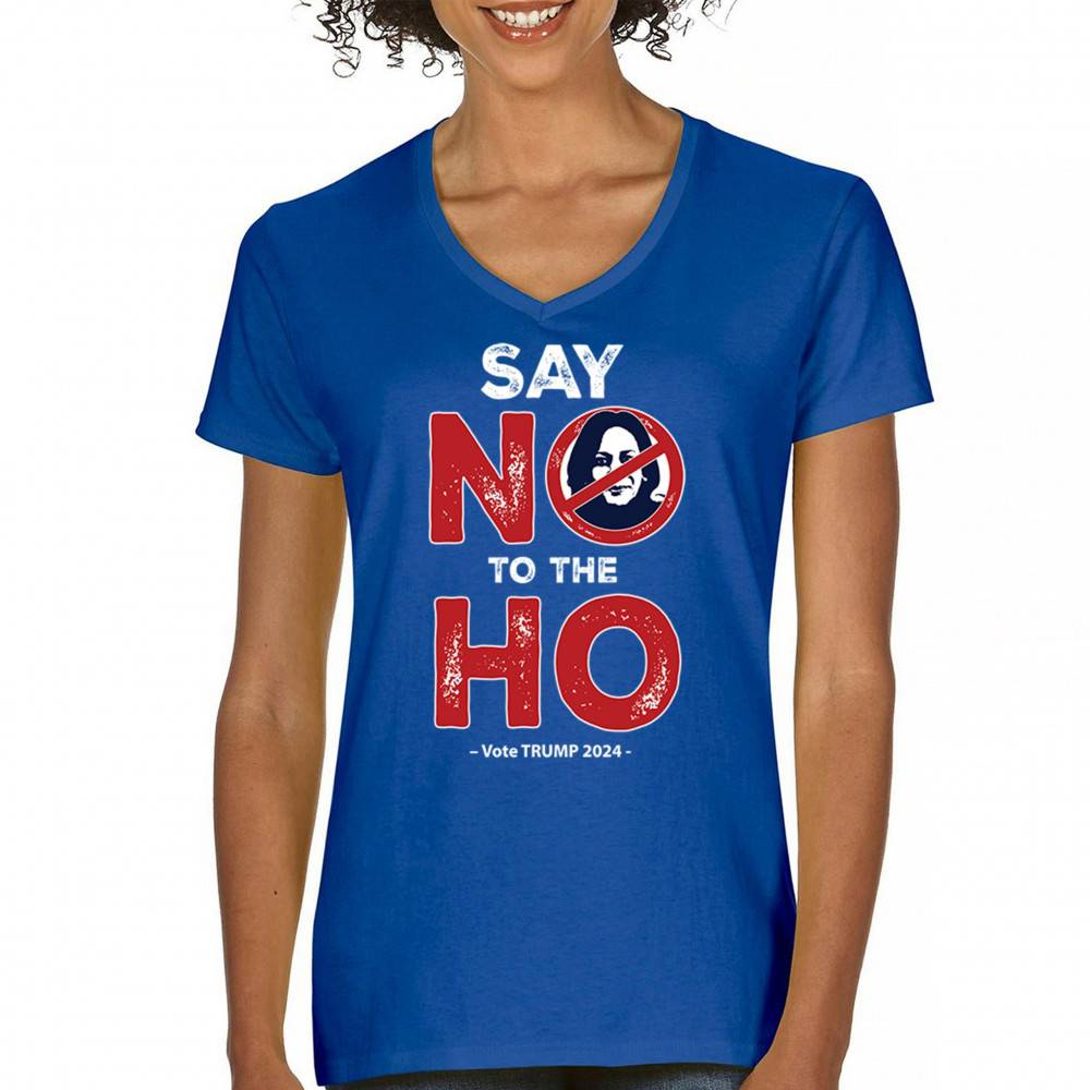 Show your conservative spirit with the "Say No to the Ho" print, perfect for rallies or daily wear. Support Trump-Vance 2024 and Make America Great Again.