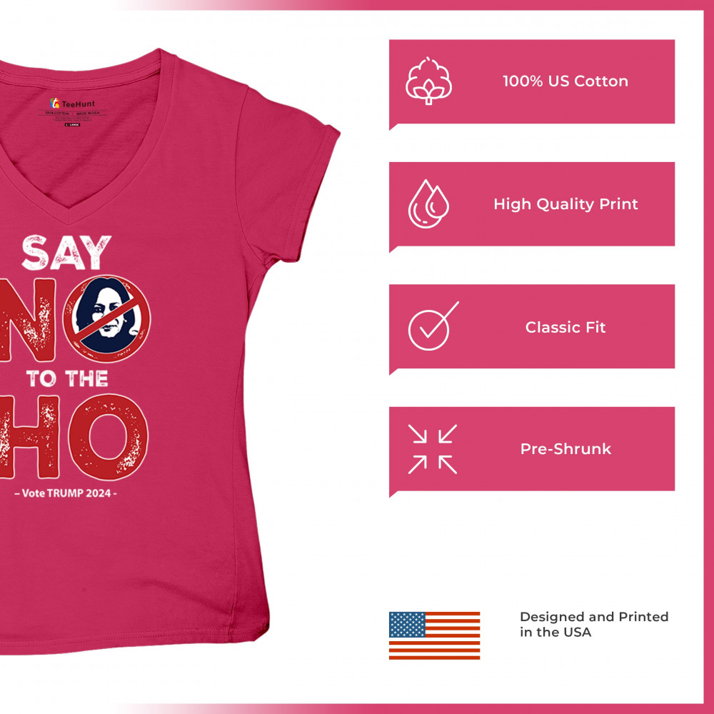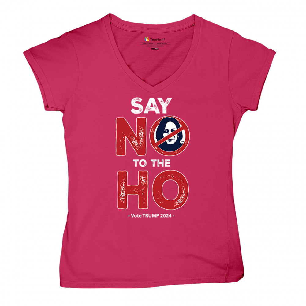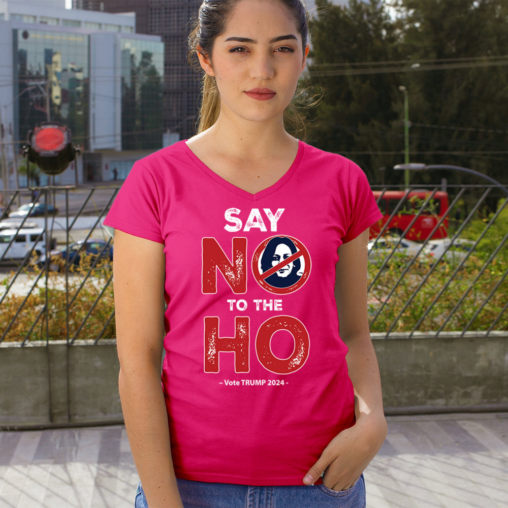 Show your conservative spirit with the "Say No to the Ho" print, perfect for rallies or daily wear. Support Trump-Vance 2024 and Make America Great Again.