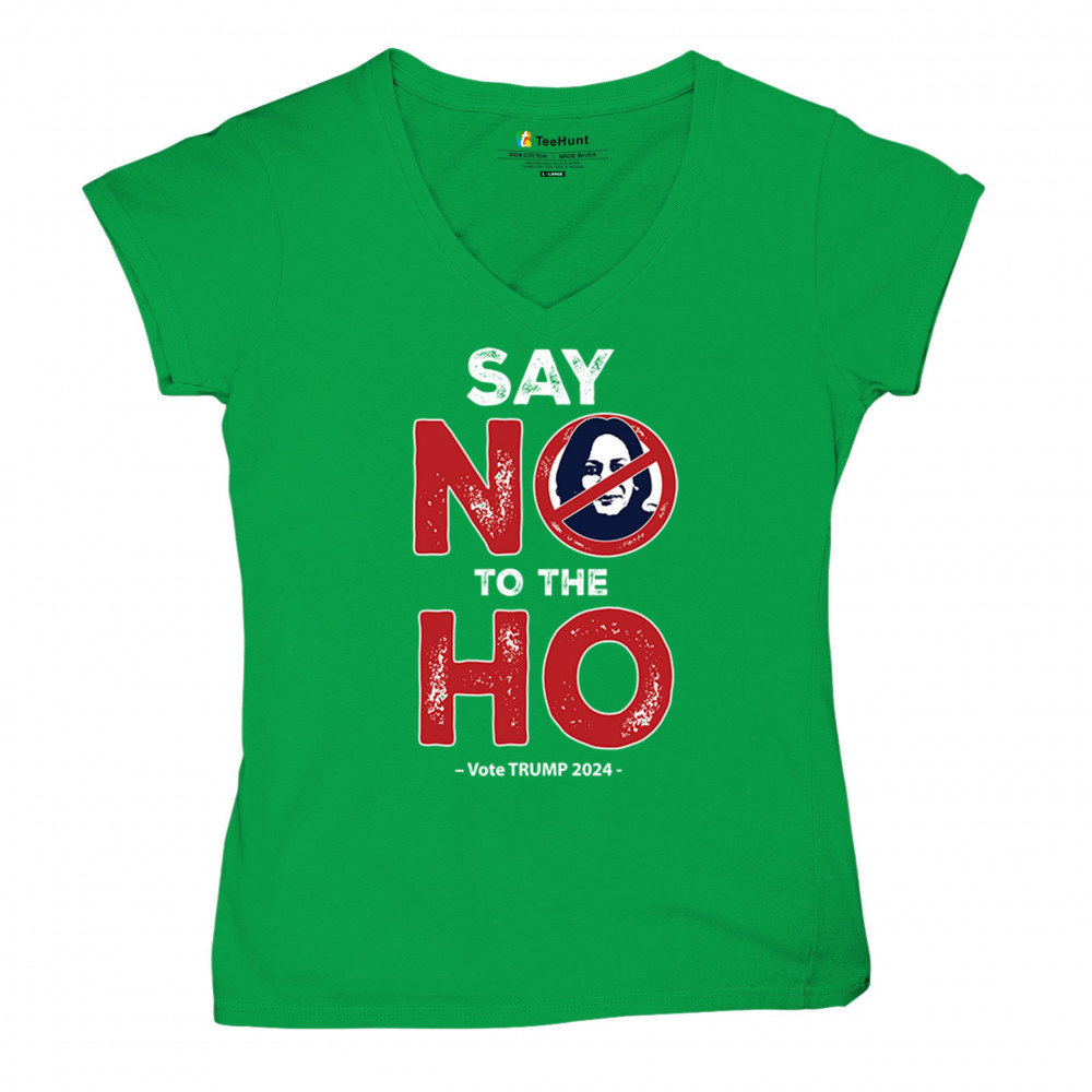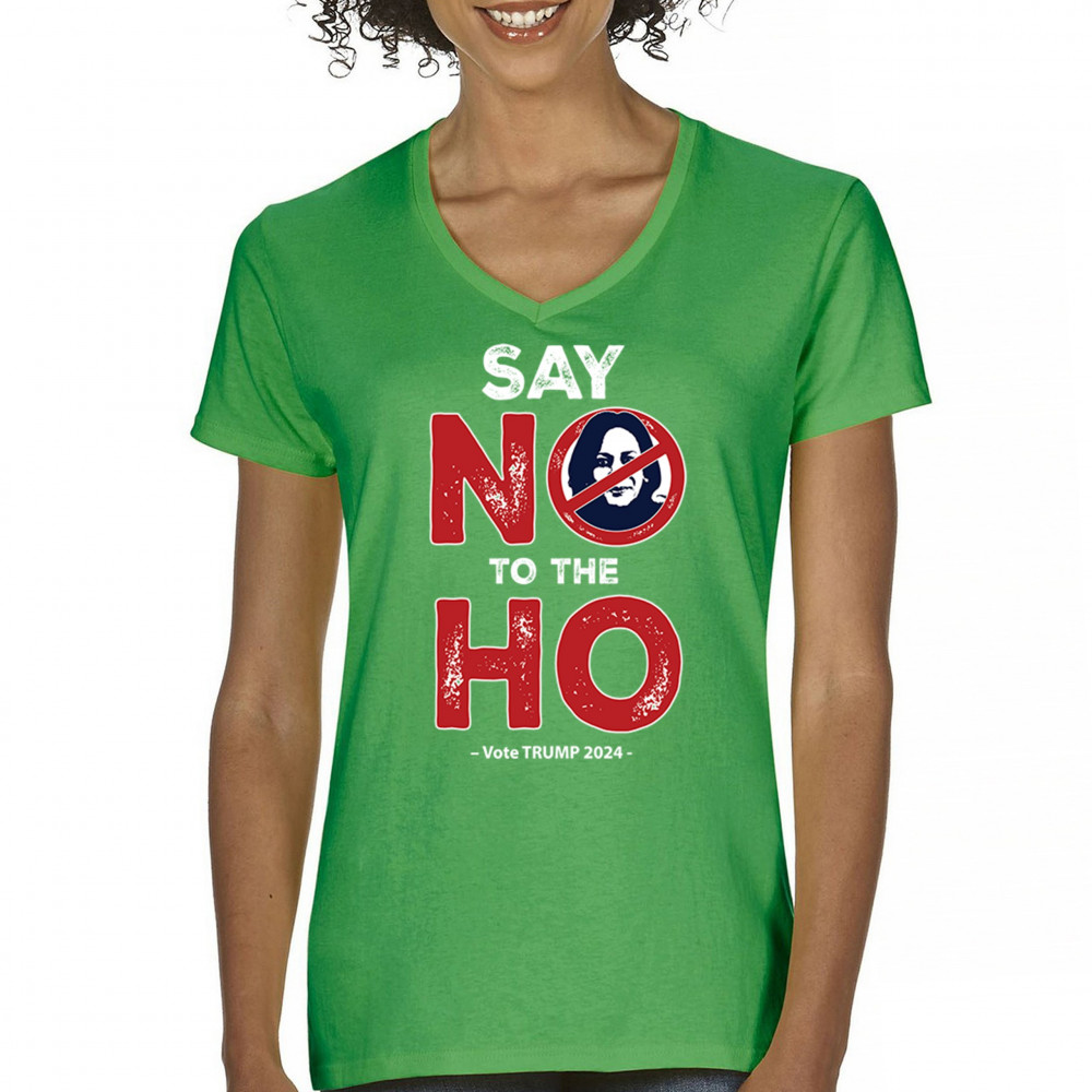 Show your conservative spirit with the "Say No to the Ho" print, perfect for rallies or daily wear. Support Trump-Vance 2024 and Make America Great Again.