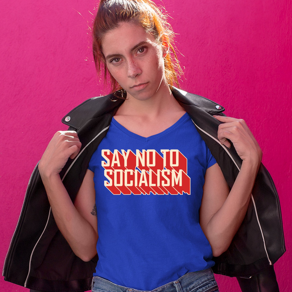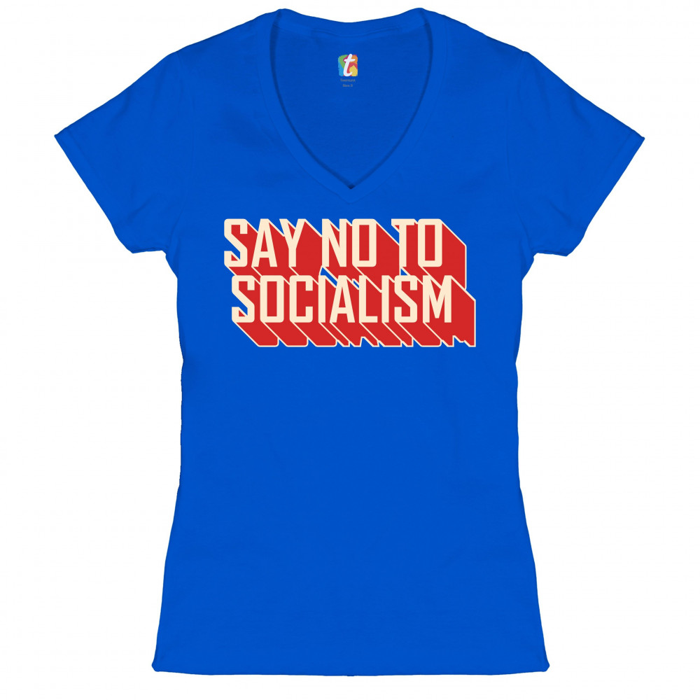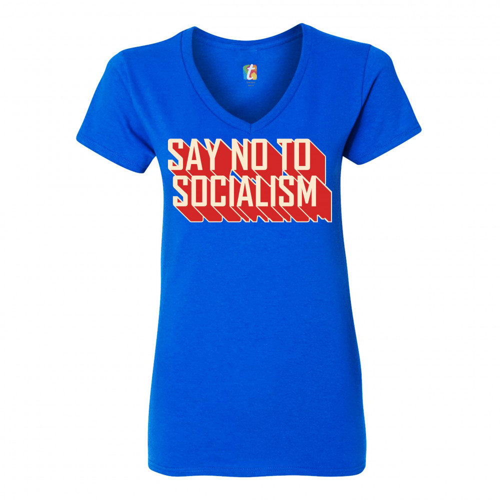 SAY NO TO SOCIALISM women's v-neck t-shirt only you can prevent socialism tee royal blue