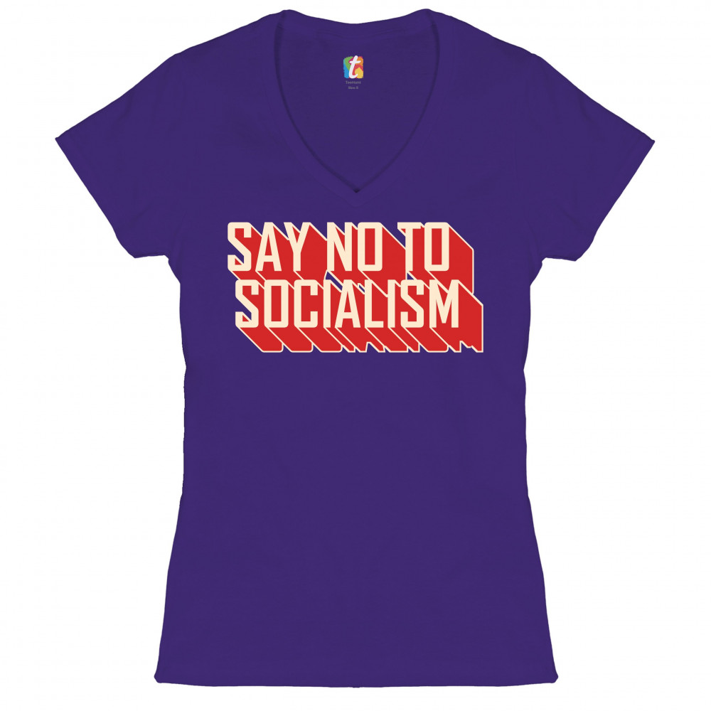 SAY NO TO SOCIALISM women's v-neck t-shirt only you can prevent socialism tee purple