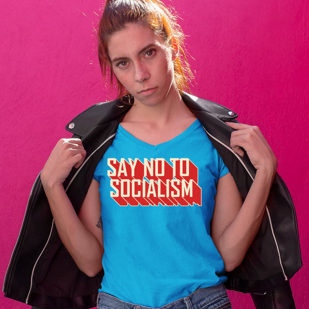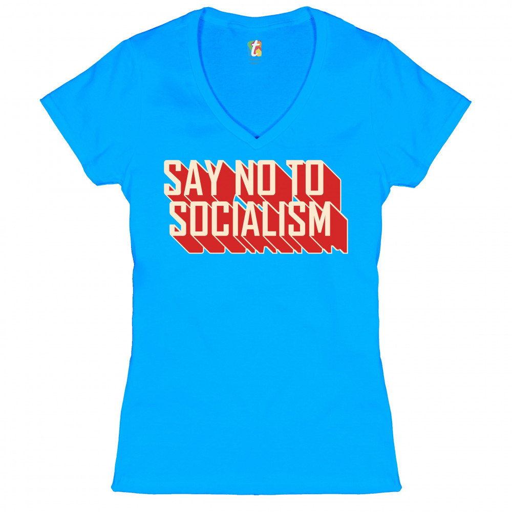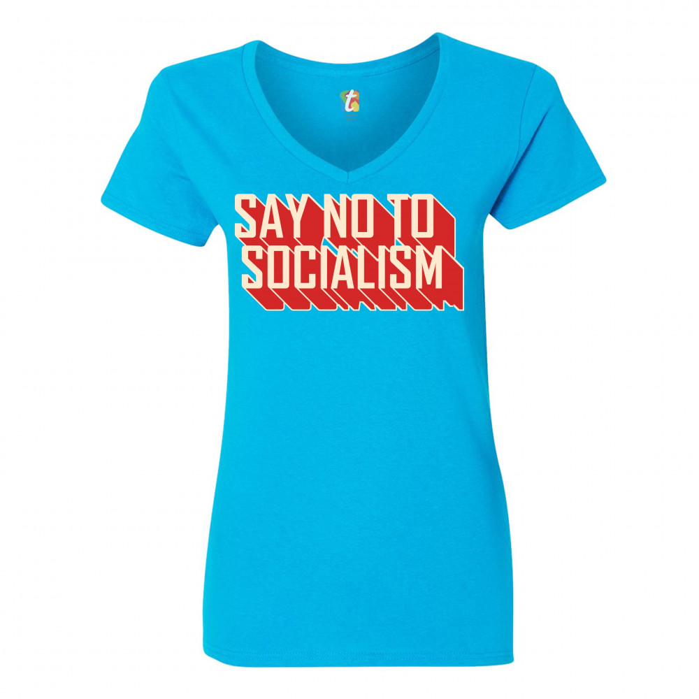 SAY NO TO SOCIALISM women's v-neck t-shirt only you can prevent socialism tee turquoise