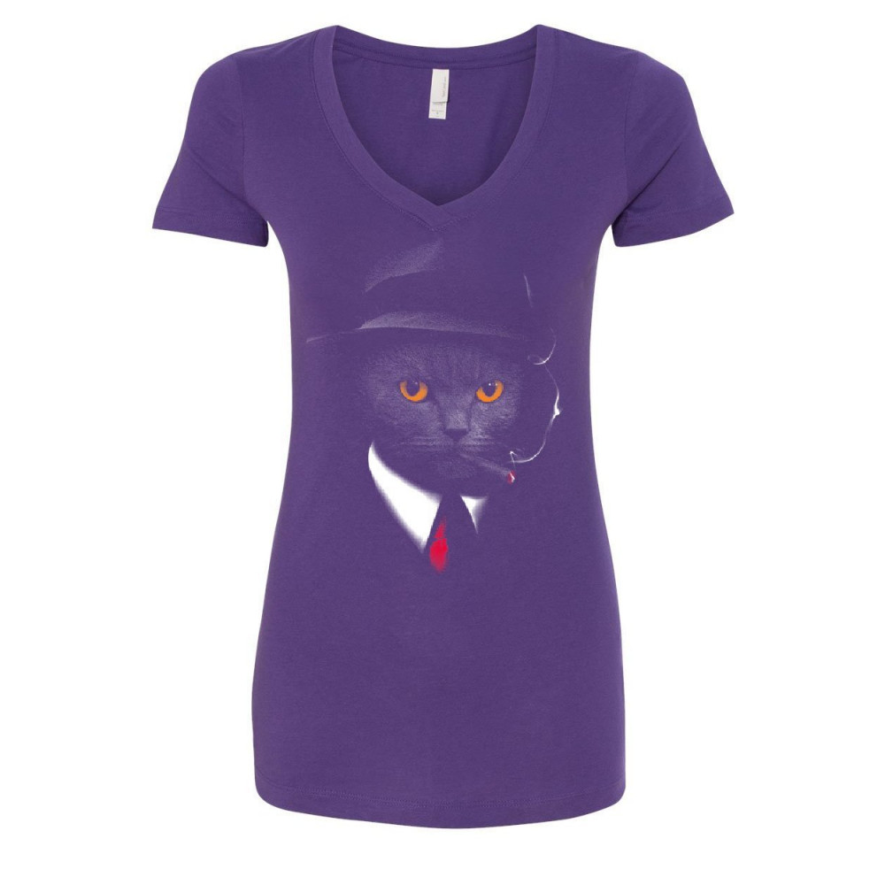 SECRET AGENT CAT women's v-neck t-shirt detective kitty funny spy cigar pet purple
