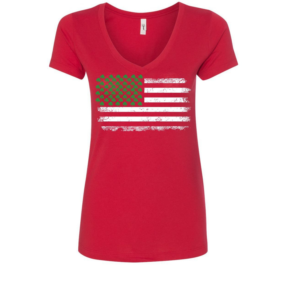 SHAMROCK AMERICAN FLAG women's v-neck t-shirt stars and stripes st. patrick's red