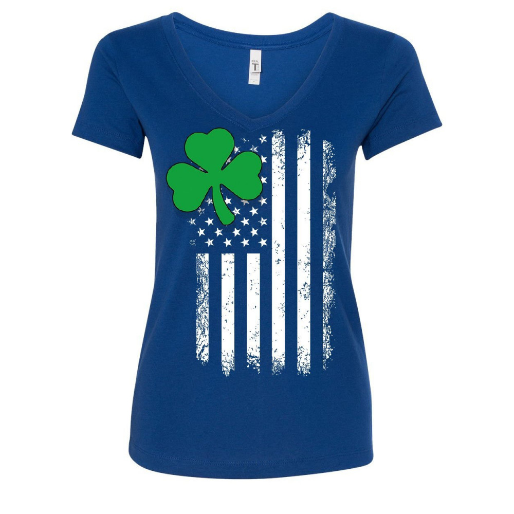 SHAMROCK FLAG STARS AND STRIPES women's v-neck t-shirt irish st. patrick's day royal blue