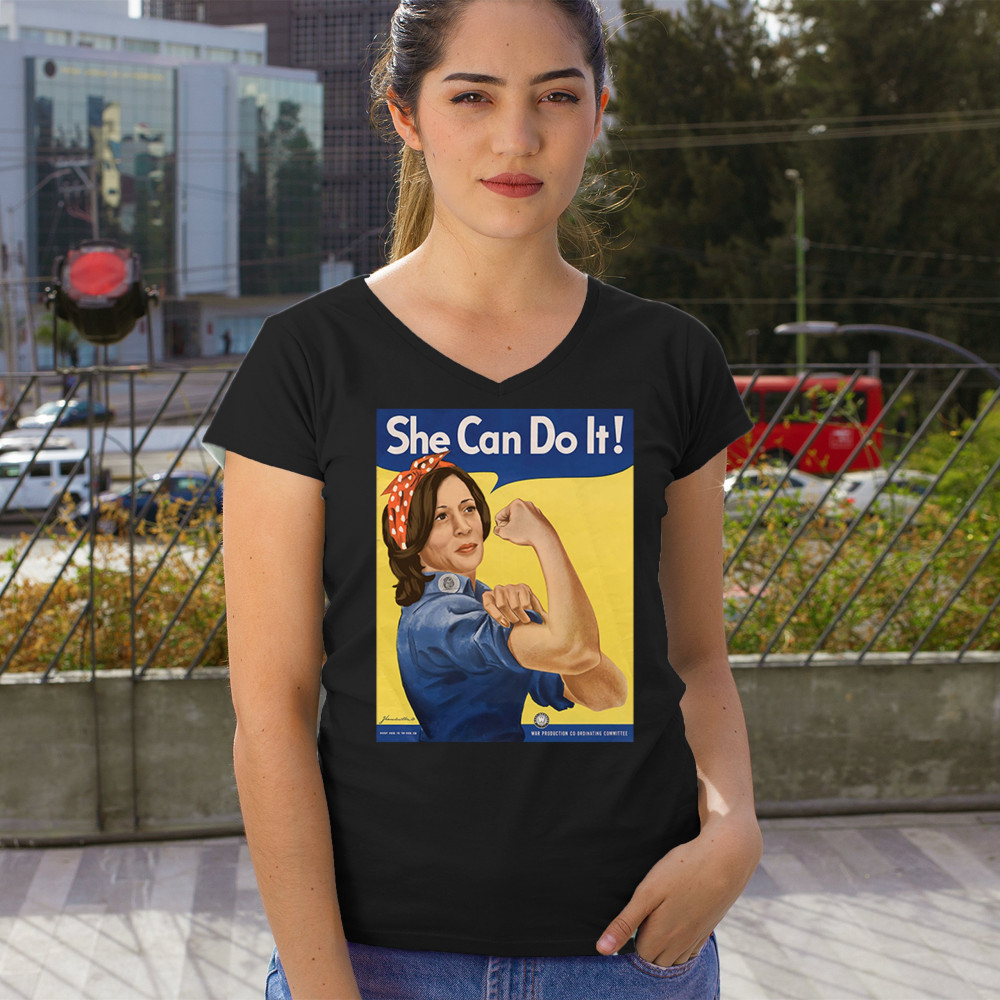 Show your support for Kamala Harris in 2024 with this empowering "She Can Do It!" design. Inspired by Rosie the Riveter, it symbolizes strength, equality, and progress.