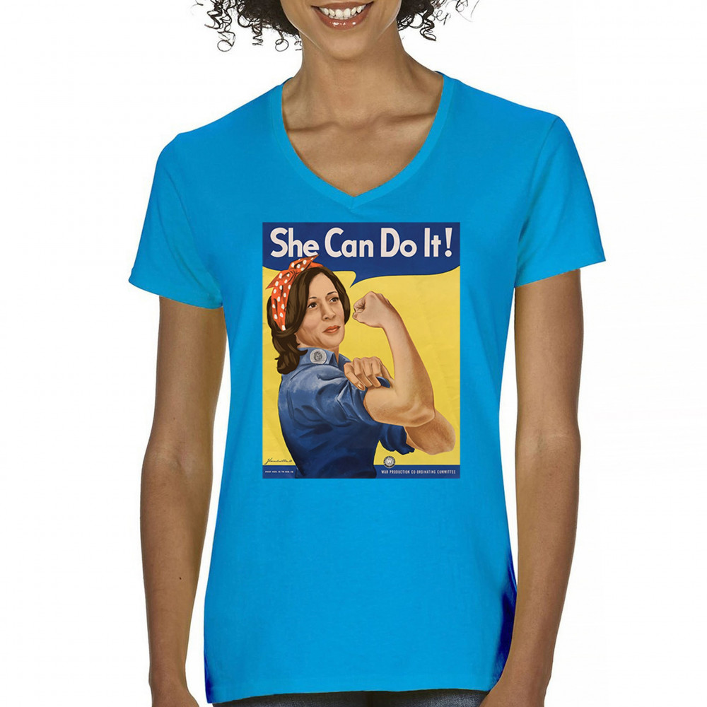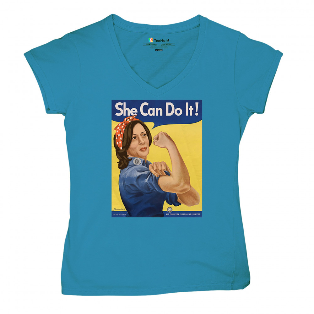 Show your support for Kamala Harris in 2024 with this empowering "She Can Do It!" design. Inspired by Rosie the Riveter, it symbolizes strength, equality, and progress.