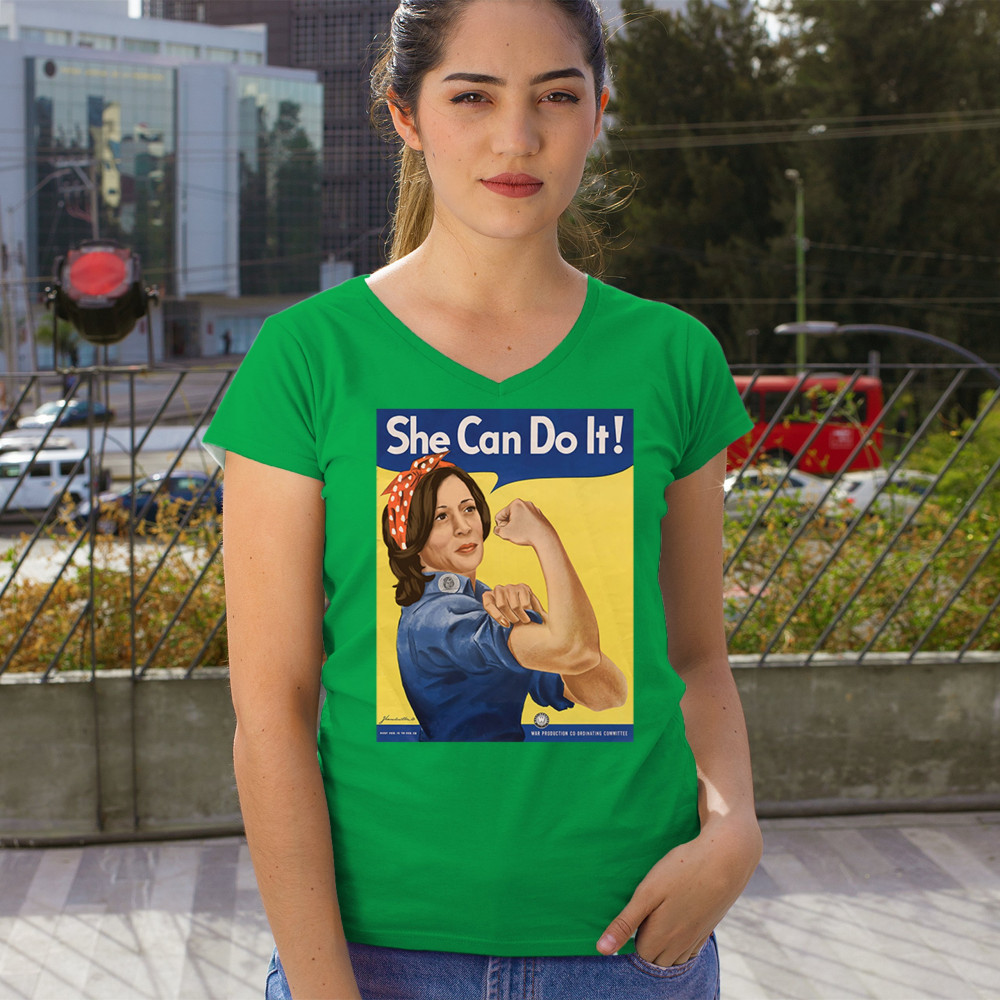 Show your support for Kamala Harris in 2024 with this empowering "She Can Do It!" design. Inspired by Rosie the Riveter, it symbolizes strength, equality, and progress.