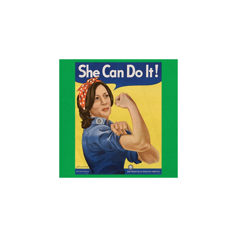 Support Kamala Harris in her 2024 presidential bid with this powerful "She Can Do It!" design. Inspired by the iconic Rosie the Riveter, this artwork is a symbol of strength, equality, and determination. It's the perfect choice for anyone who believes in Harris’s vision for a better future. Whether at rallies, events, or in your daily life, this design will proudly display your commitment to justice and progress. Let’s unite under the banner of equality and aim for victory together.