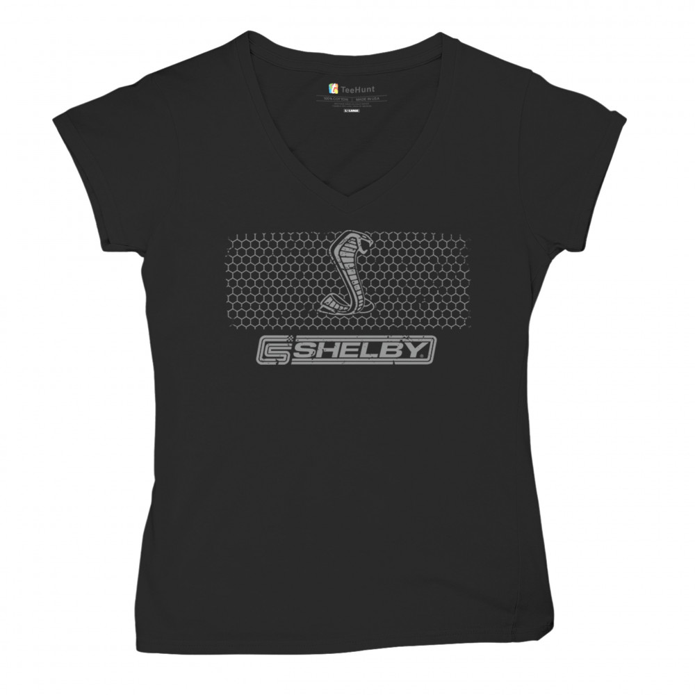 SHELBY LOGO HONEYCOMB GRILLE women's v-neck t-shirt mustang cobra gt500 gt tee black