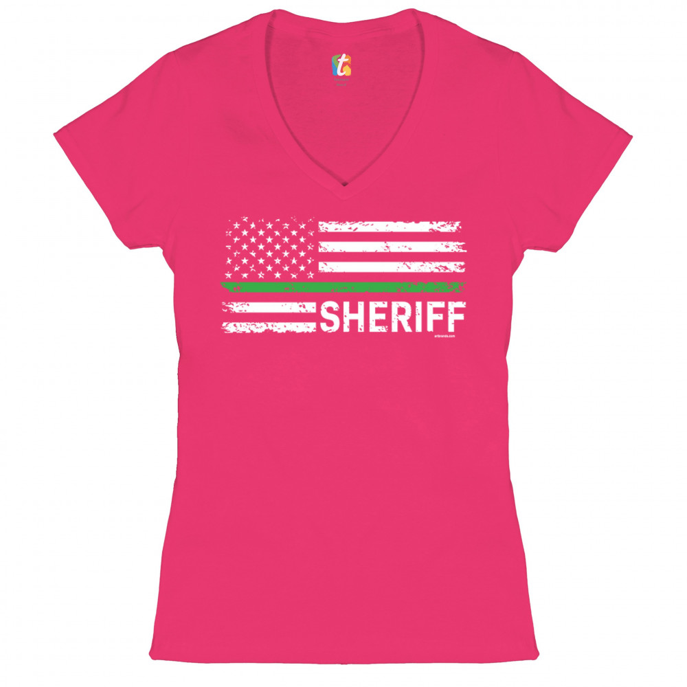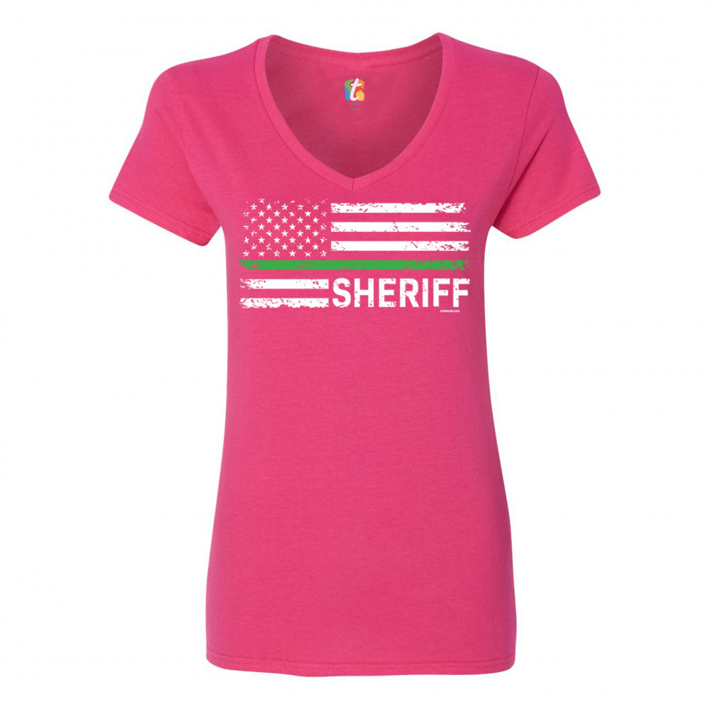 SHERIFF DISTRESSED AMERICAN FLAG women's v-neck t-shirt first responders tee pink