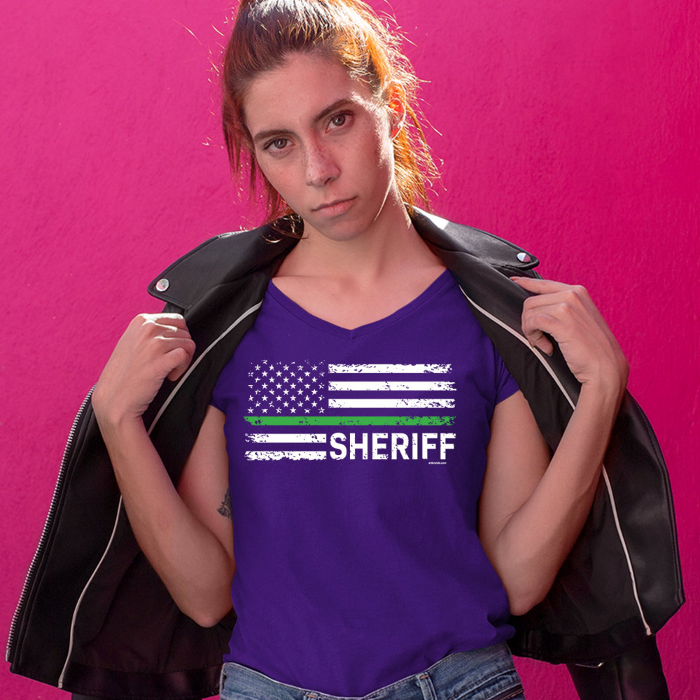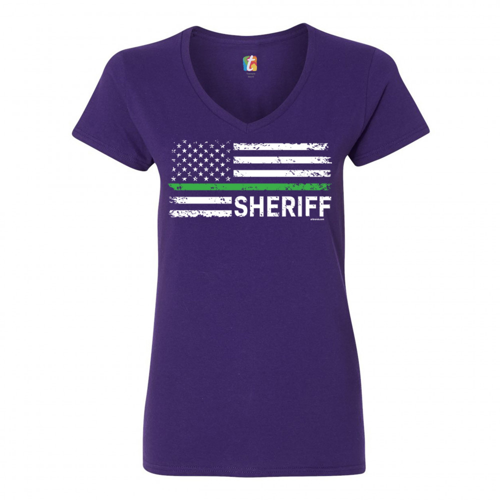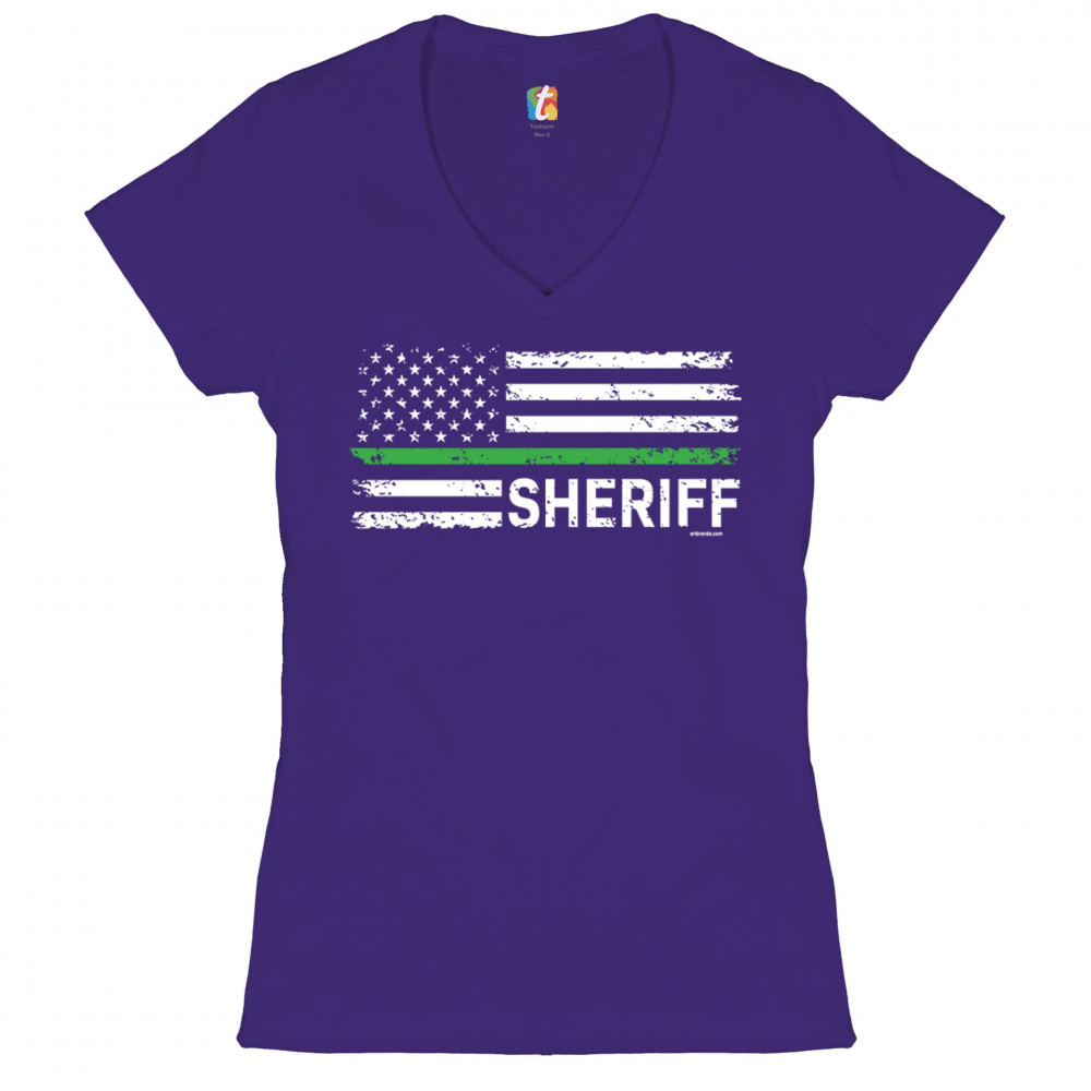 SHERIFF DISTRESSED AMERICAN FLAG women's v-neck t-shirt first responders tee purple