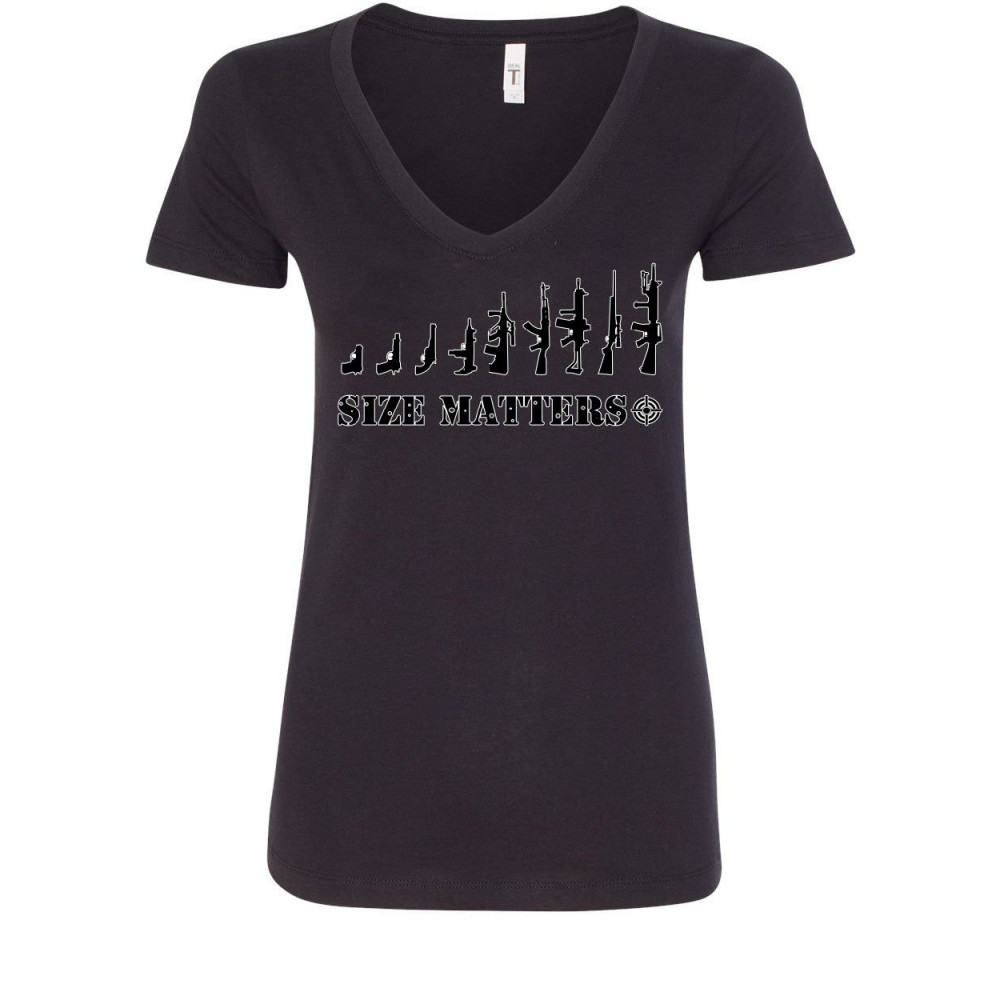 SIZE MATTERS 2a women's v-neck t-shirt defend 2nd amendment pro guns weapons black