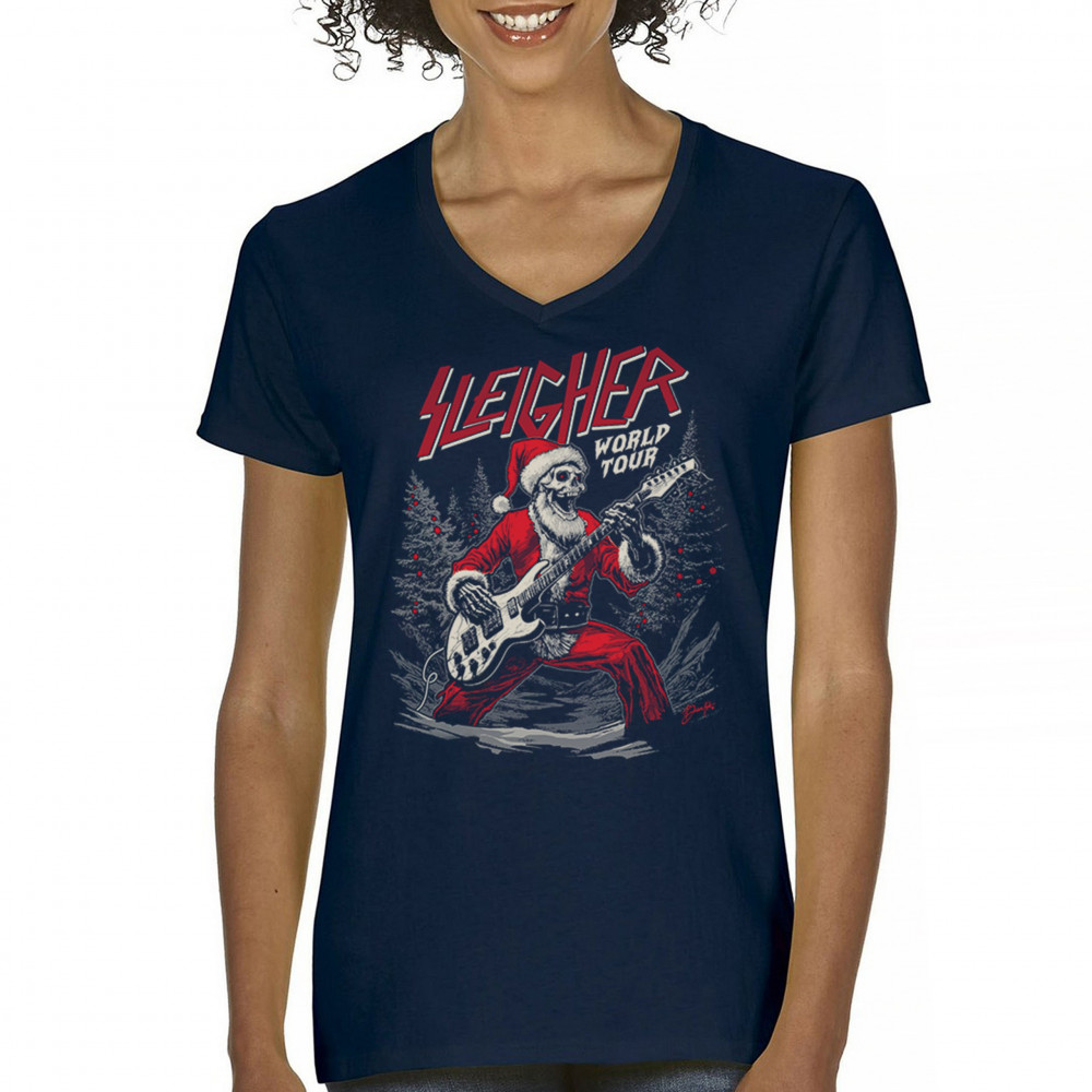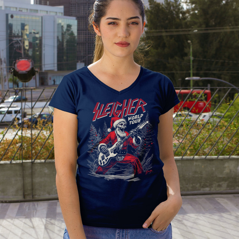 Rock the holidays with the "Sleigher World Tour" Santa skeleton design. Perfect for music lovers, holiday parties, and bold Christmas fashion!
